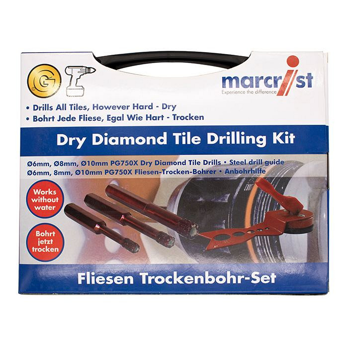 Set vsebuje: Diamantne krone: 6/8/10 mm ter vodilo za vrtanje.