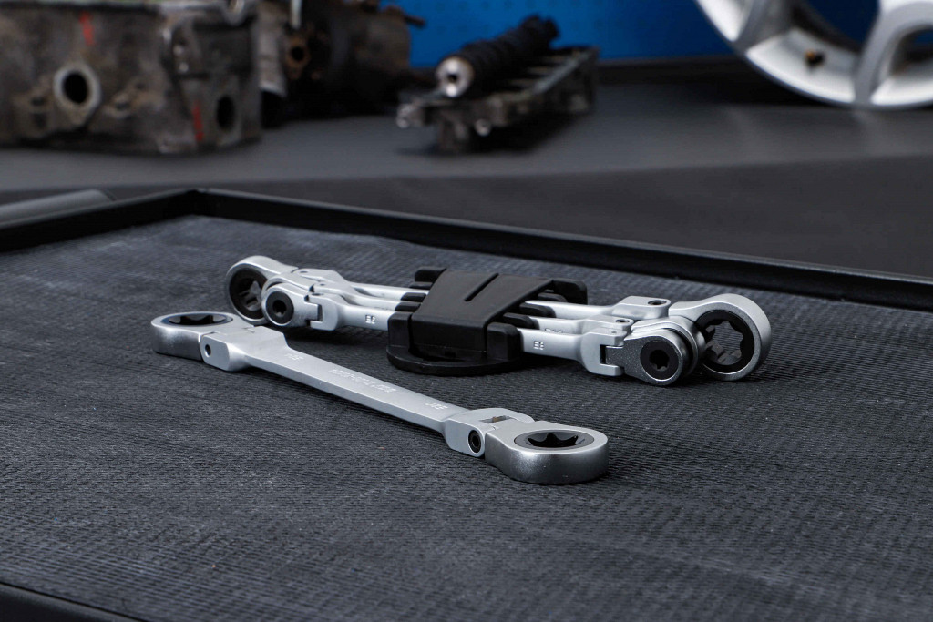 Primerno za vijačne glave tipa Eza montažo in razstavljanje na težko dostopnih območjih s spojnimi in gibljivimi glavami, nastavljivimi za 90 °, fino zobatimi z 72 zobmi. 1 obročni ključ z dvojno zaskočnico | nastavljiv | z obročki tipa E | E6 x E8 (BGS 71028-6X8)1 obročni ključ z dvojno zaskočnico | nastavljiv | z obročki tipa E | E10 x E12 (BGS 71028-10X12)1 obročni ključ z dvojno zaskočnico | nastavljiv | z obročki tipa E | E14 x E18 (BGS 71028-14X18)1 obročni ključ z dvojno zaskočnico | nastavljiv | z obročki tipa E | E20 x E24 (BGS 71028-20X24)