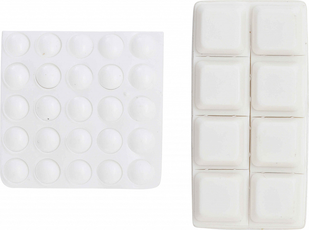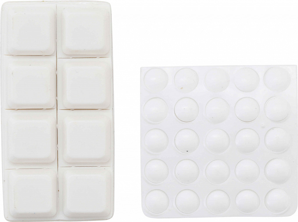 Za uporabo kot zapora na vratih omar in kot zaščita pohištva na podlagi opremesamolepilno. 25 elastičnih zamaškov Ø 8 mm x 2,5 mm8 elastičnih zamaškov 15 x 15 mm