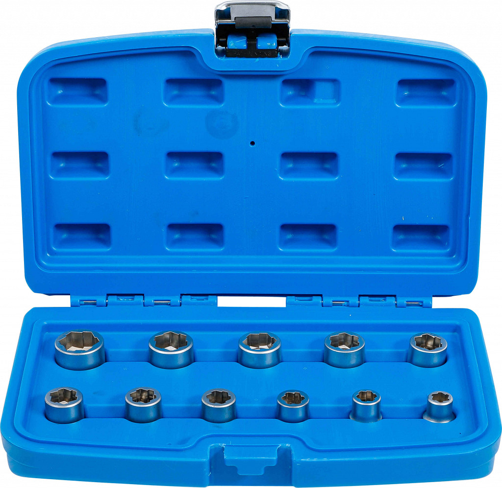 Posebni nasadni ključi za odvijanje zaobljenih zunanjih šestrobih vijakov in matic, velikosti 8–19 mm, primerni tudi za privijanje.