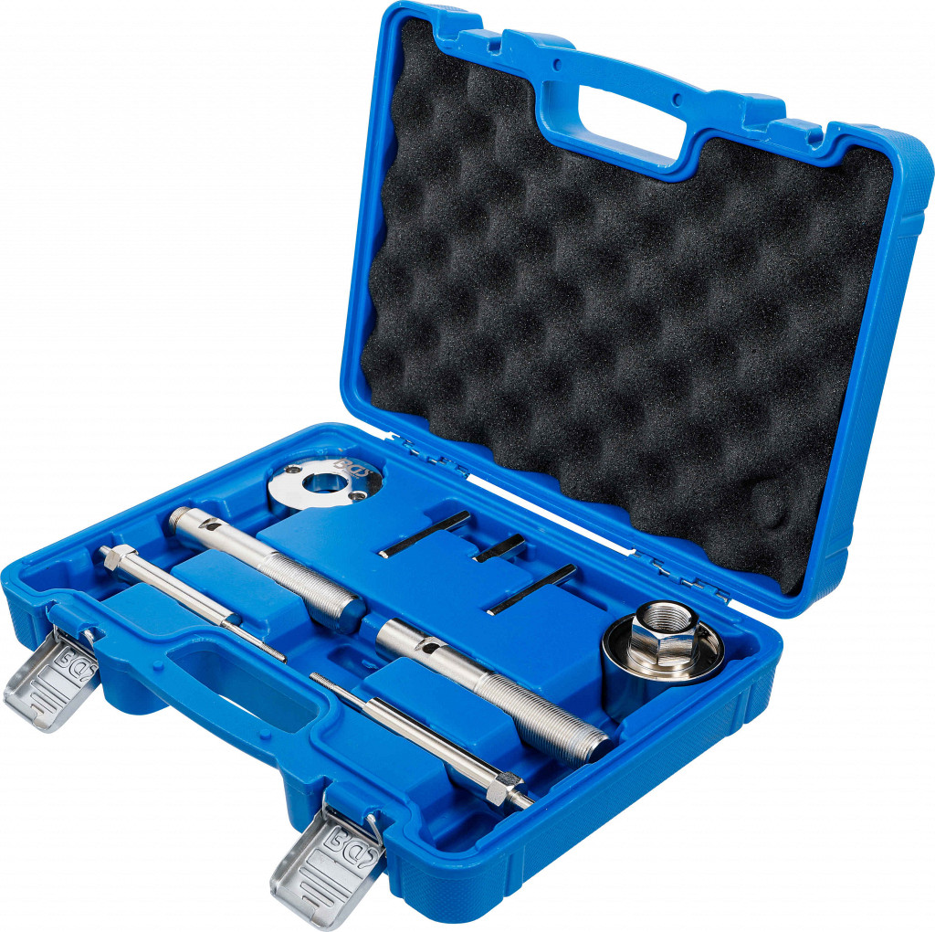 Za varno in enostavno odstranitev dizelskih vbrizgalnih naprav, nameščenih pri naslednjih proizvajalcih vozil in motorjih: Renault, Nissan in Opel/Vauxhall 2.0L (M9R).. primerno za naslednje modele vozil: Renault: Espace IV (2006-2015), Espace V (2015-2018), Koleos (2008-2016), Laguna II (2005-2007), Laguna III (2007-2015), Megane III (2009-2017), Megan II (2006-2010), Megane III (2009-2017), Scenic II (2006-2009), Scenic III (2009-2017) 16), Trafic II (2006–2015), Trafic III (2014–), Vel Satis (2005–2010)Opel/Vauxhall: Vivaro A (2006–2014), Vivaro B (2014–2019)Nissan: Primastar (2006–2015), Qashqai (2007–2014), X-Trail II (2007–2014), X-Trail III (2014–2022). . kode motorjev: M9R 780 / 782 / 784 / 630 / 692 / 786 / 788.to uporabljati kot OEM:. Renault MOT1966, Nissan 7711381966, Opel/Opel SL-50143.Obseg dobave:... 1 vlečna matica M30 z ležajno enoto1 vlečno vreteno z M17 x 1 zunanji navoj za piezo injektorje1 vlečno vreteno z M14 x 1,5 notranjim navojem za elektromagnetne injektorje2 podporni vijaki1 podporna plošča2 zaklepni zatiči1 bit, notranji šesterokotnik za demontažo notranje matice obroča na elektromagnetnih injektorjih
