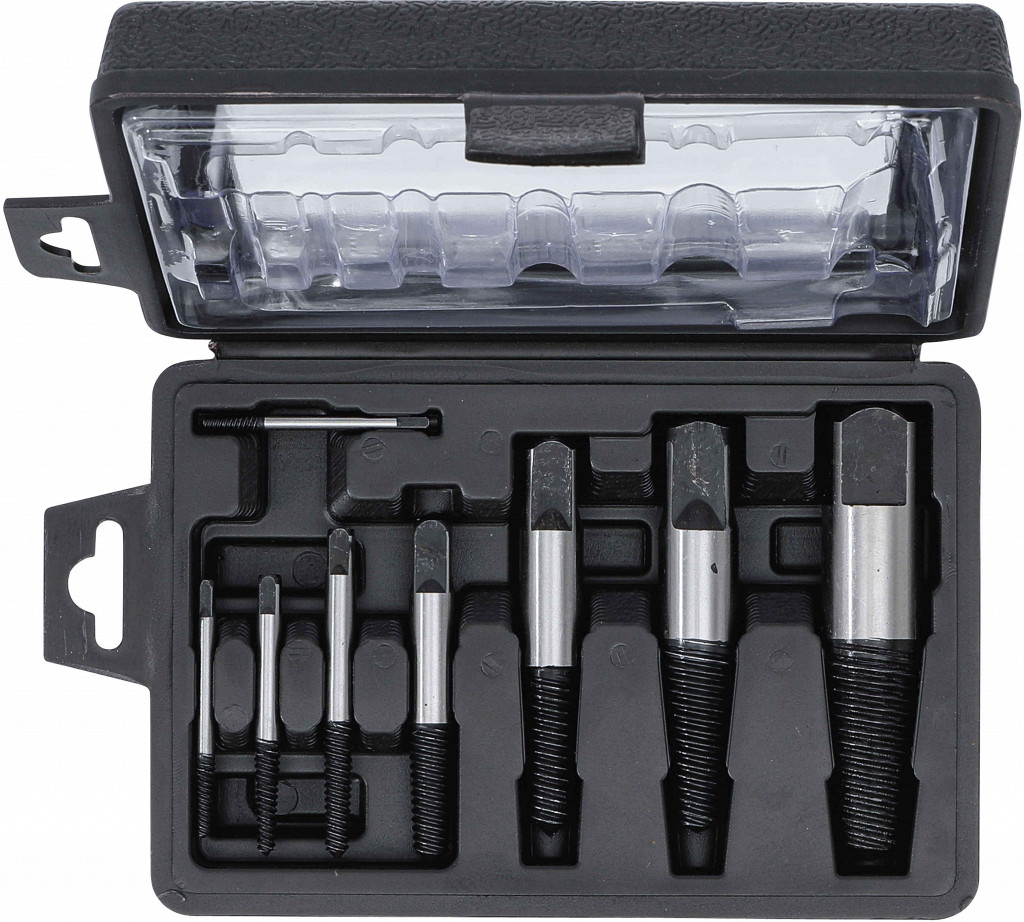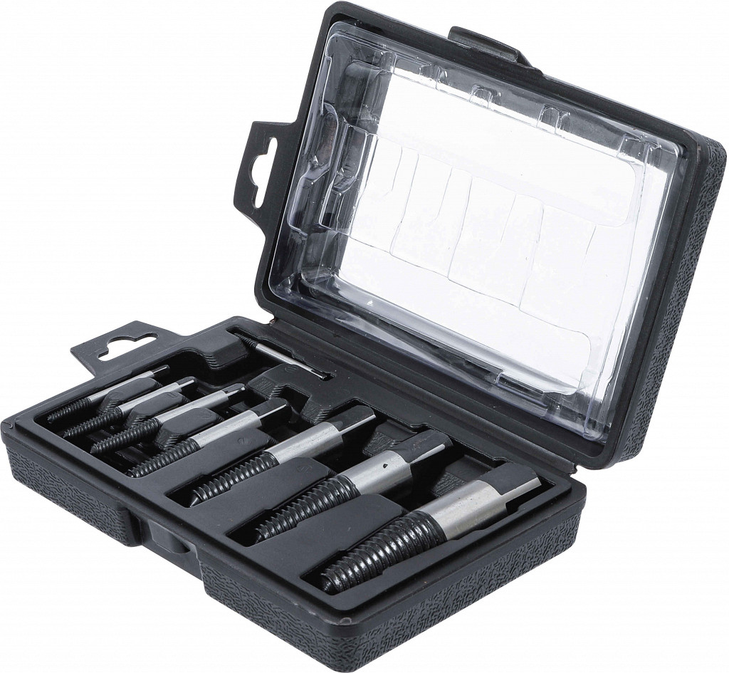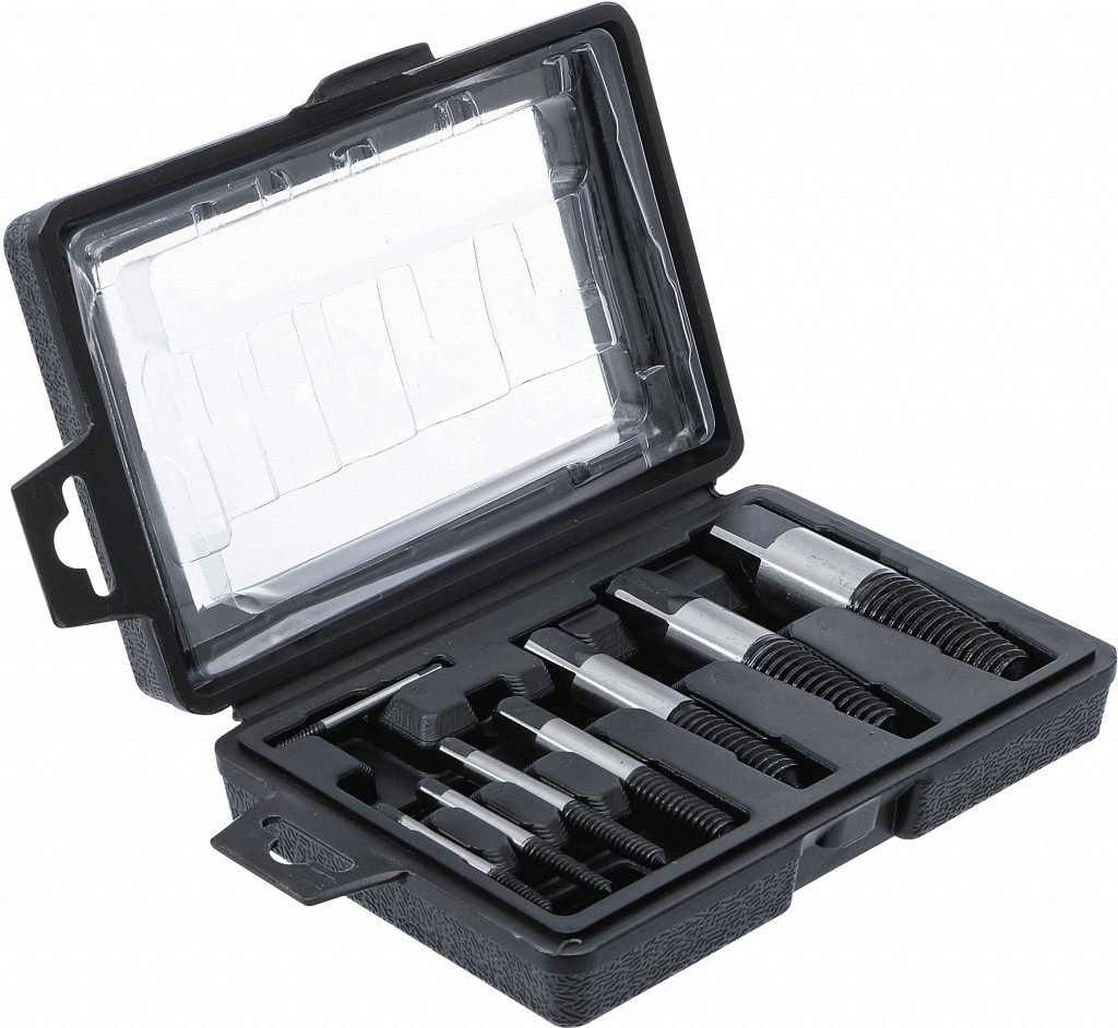 Za hitro in enostavno odvijanje ter odstranjevanje polomljenih in poškodovanih vijakov ter zagozdenih vijakov z uničenimi glavami, za utorne in križne vijake PH in PZ ter druge profile vijakov, v plastičnem kovčku. Izvlekar za vijake velikosti M3 - M6, M6 - M8, M8 - M11, M11 - M14, M14 - M18, M18 - M25, M25 - M35, M35 - M50.