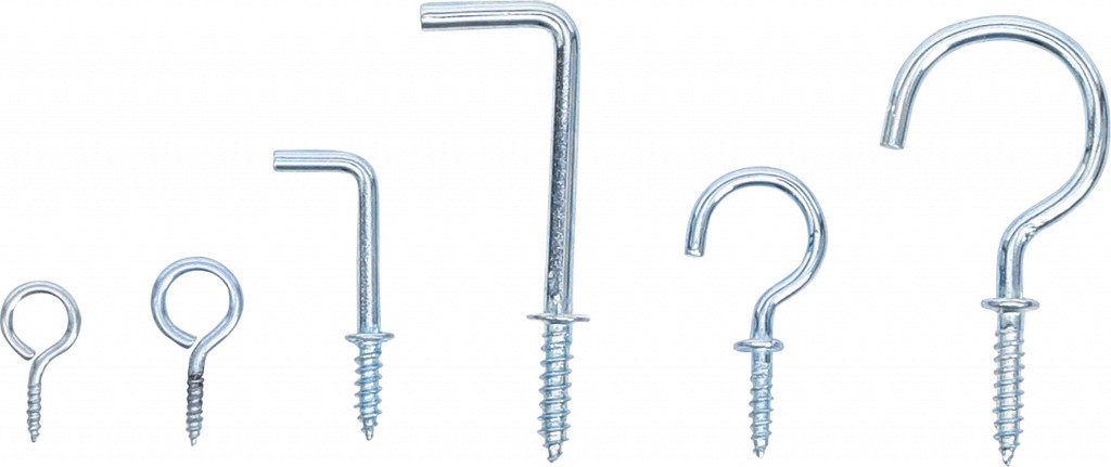 V škatli z asortimanom.obseg dobave:... 25 očescev, 16 mm10 očescev, 20 mm15 obročkastih kljuk 20 mm7 obročkastih kavljev 30 mm15 vijačnih kljuk, 20 mm8...