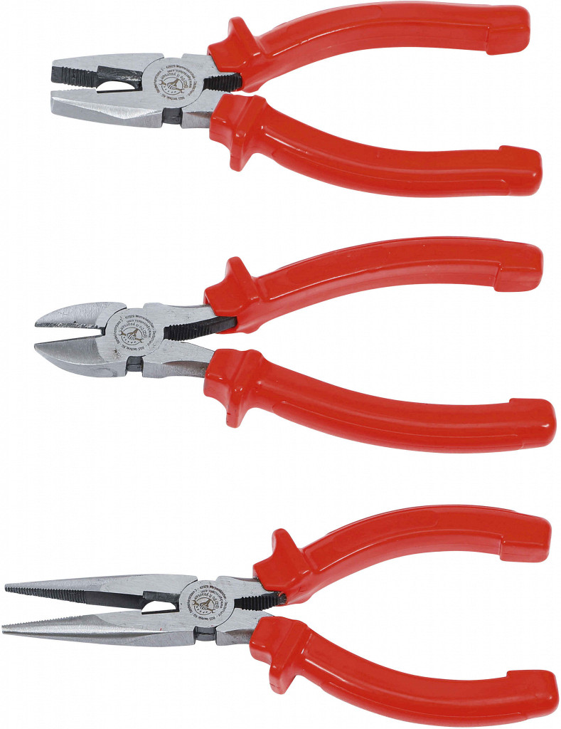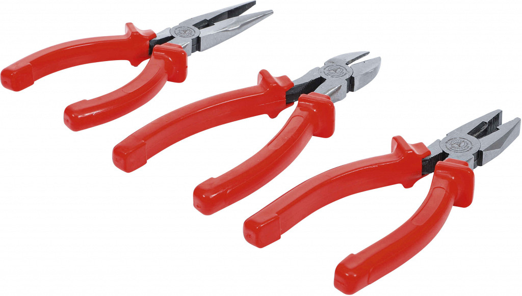 Komplet univerzalnih klešč: kombinirane klešče 150 mm, švedski strižnik 150 mm, ravne podaljšane klešče 150 mm, površina polirana, končna obdelava polirana.