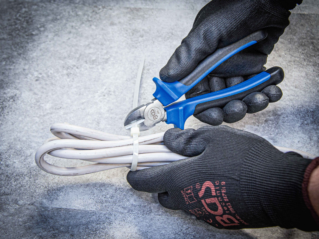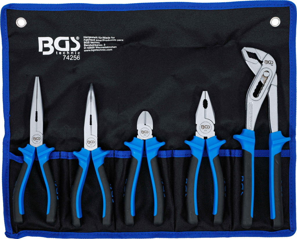 Optimalna kombinacija vseh običajnih klešč, ki jih ne sme manjkati v nobeni servisni delavniciuniverzalno uporabna za najpogostejša popravila optimalno opremljena za vsako uporabo, kot so držanje, prijemanje, upogibanje in rezanje delovni rezalniki s kaljenimi čeljustmi za rezanje mehkih in trdih žičnih klešč so primerni za prijemanje ploščatega in okroglega materiala ter za rezanje mehkih in trdih žičnih klešč z nazobčano čeljustjo, Klešče za vodno črpalko 7-smerno nastavljivo, s tanko zasnovo v območju glave in spoja, zagotavljajo dober dostop do obdelovanca. 1 klešče z dolgim nosom | naravnost | 200 mm (BGS 389)1 klešče z ukrivljenim nosom | 200 mm (BGS 373)1 švedski diagonalni stranski rezalnik | 165 mm (BGS 393)1 kombinirane klešče | 175 mm (BGS 370)1 klešče za vodno črpalko | Vrsta škatlastega spoja | 245 mm (BGS 399)