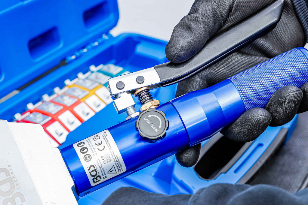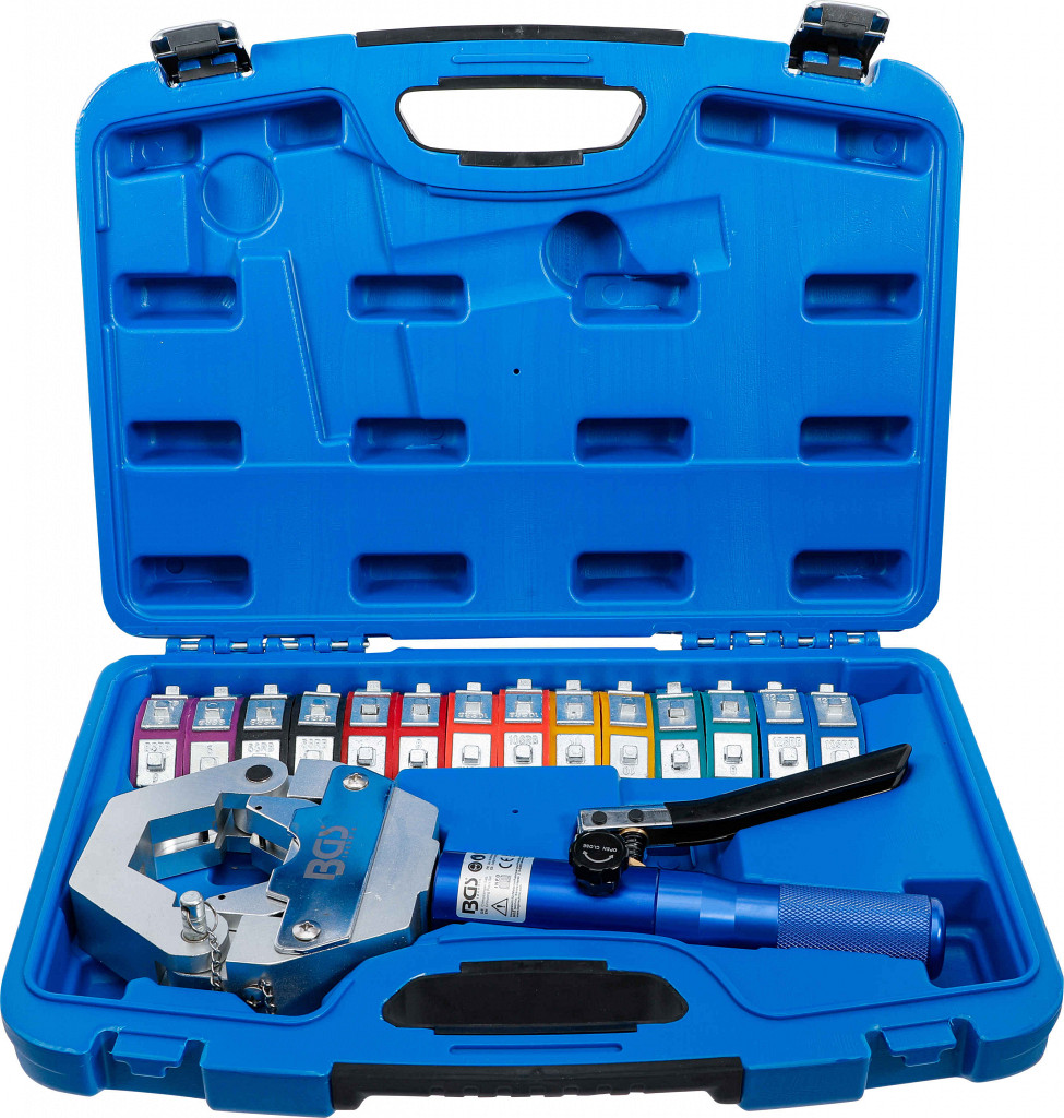 Za vzdrževanje klimatskih naprav in težkih hidravličnih sistemovprimerno za mobilno uporabo v kmetijstvu, servisu tovornjakov in trgovini z gradbenimi strojiza stiskanje stiskalnih priključkov na cevnih vodih klimatskih naprav in hidravličnih sistemovrobustno ročno orodje za hitro, natančno stiskanje barvnih matric / matric za hitro prepoznavanjeprimerno za velikosti cevi/priključkov:. 6 Enotni odbor za reševanje, 6-8 SRB, 10 SRB, 12 SRB, št. 8, št. 10, št. 12.in trpežna plastična torbica za shranjevanje in prevoz. sila bata: 35 kNpiston hod: 15 mm hitrost krčenja: 1 - 2 s.obseg dobave:... 1 hidravlična enota7 kompletov kalupov za stiskanje, 2 kos