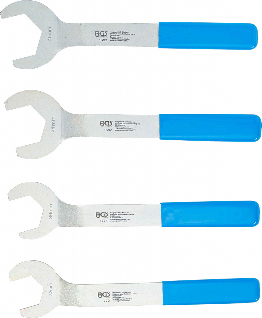 32 mm x 270 mm za držanje Visco sklopke pri BMW in Ford; 36 mm x 270 mm za držanje Visco sklopke pri Ford, Opel in GM; 41 mm x 270 mm za premikanje vodne črpalke pri Opel in GM; 46 mm x 270 mm za premikanje vodne črpalke pri Opel in GM.