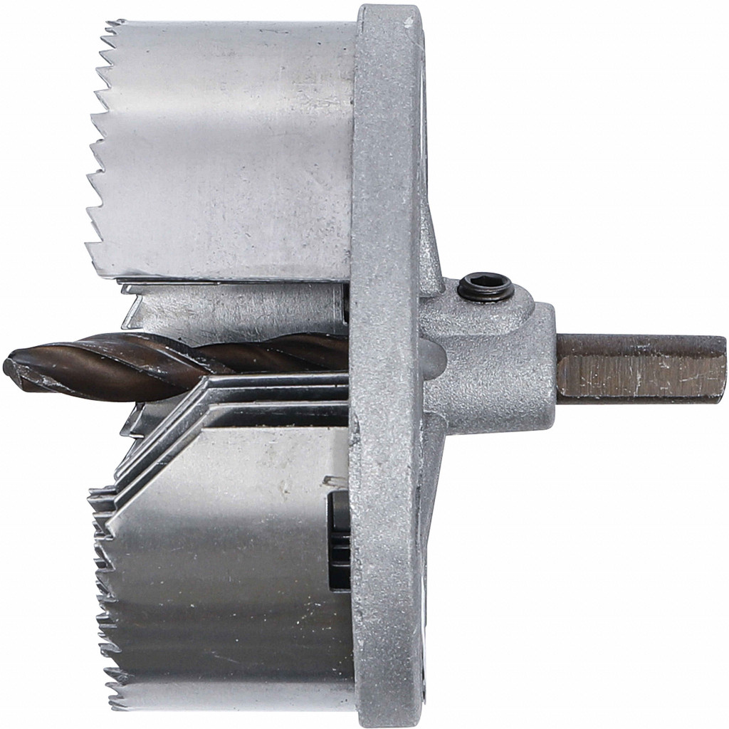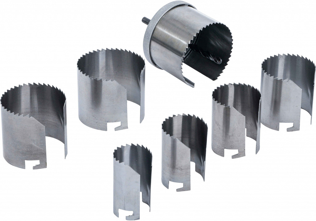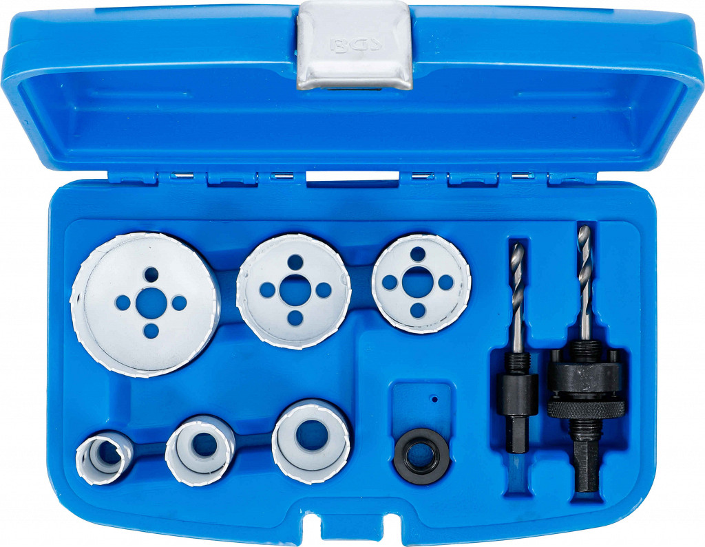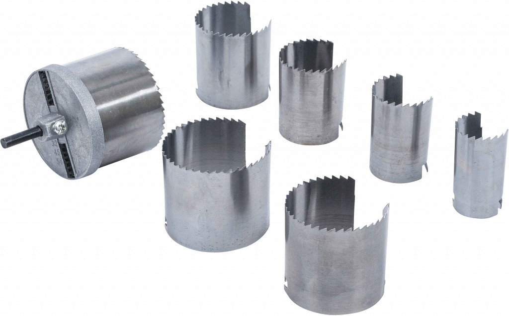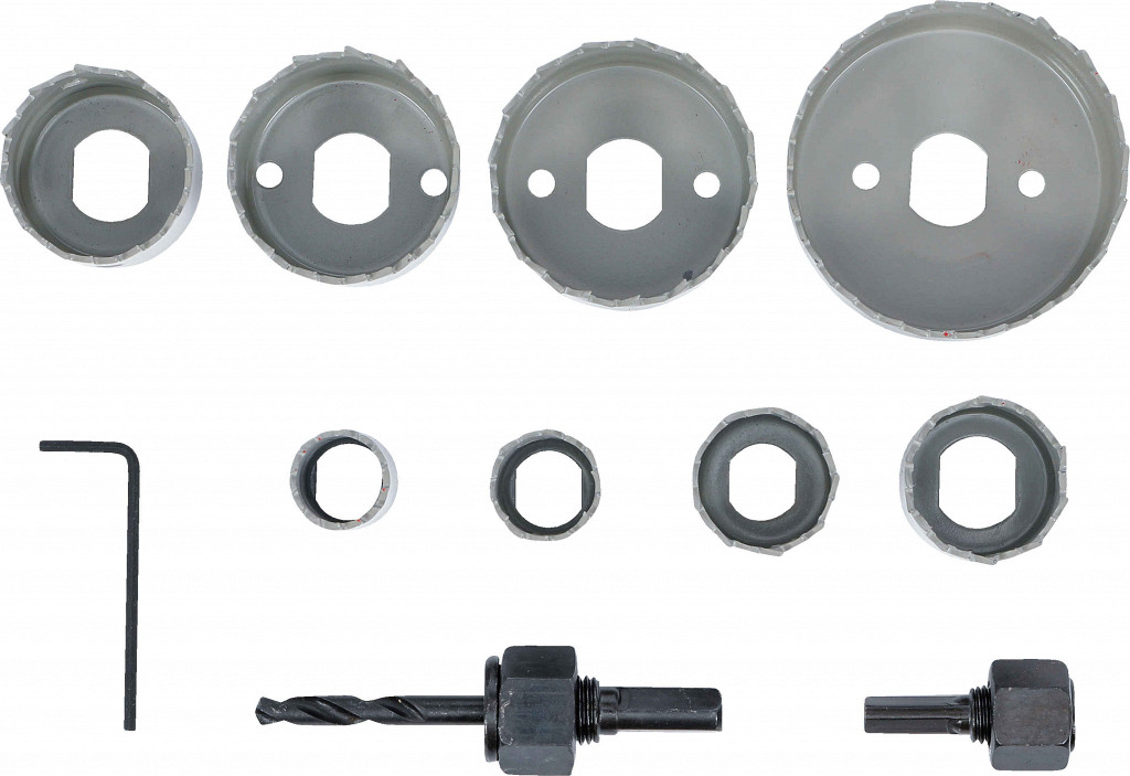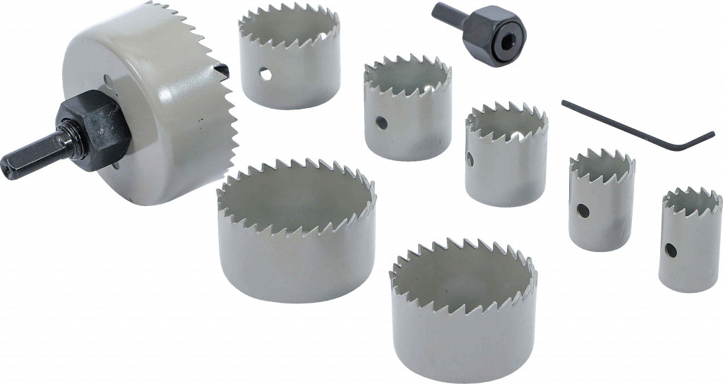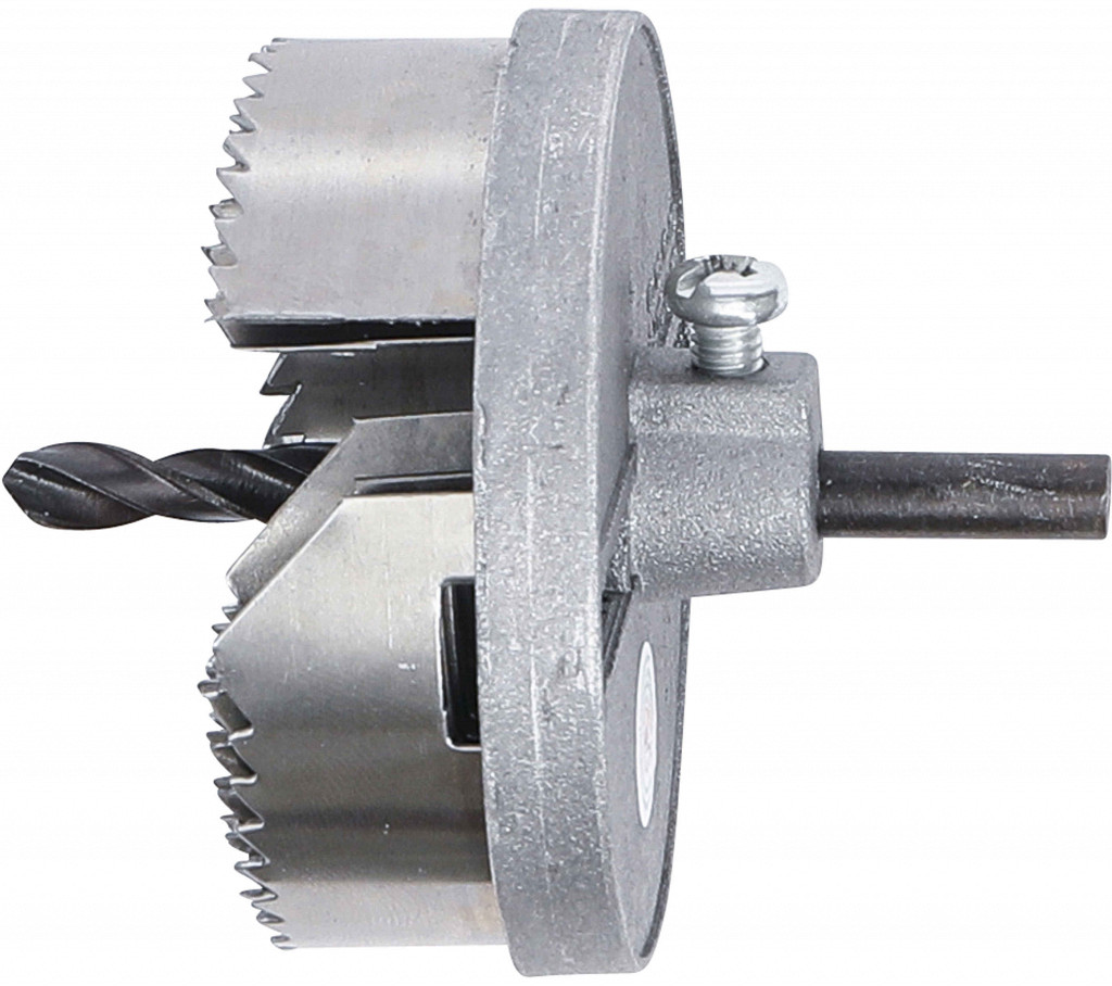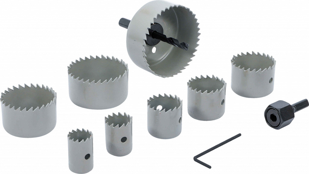Primerno za les, mavčne plošče in iverne plošče, Premer središčnega vrtalnika: 6 mm, Z ohišjem iz kovine in središčnimi vrtalniki, Vsebina paketa: žaga za...