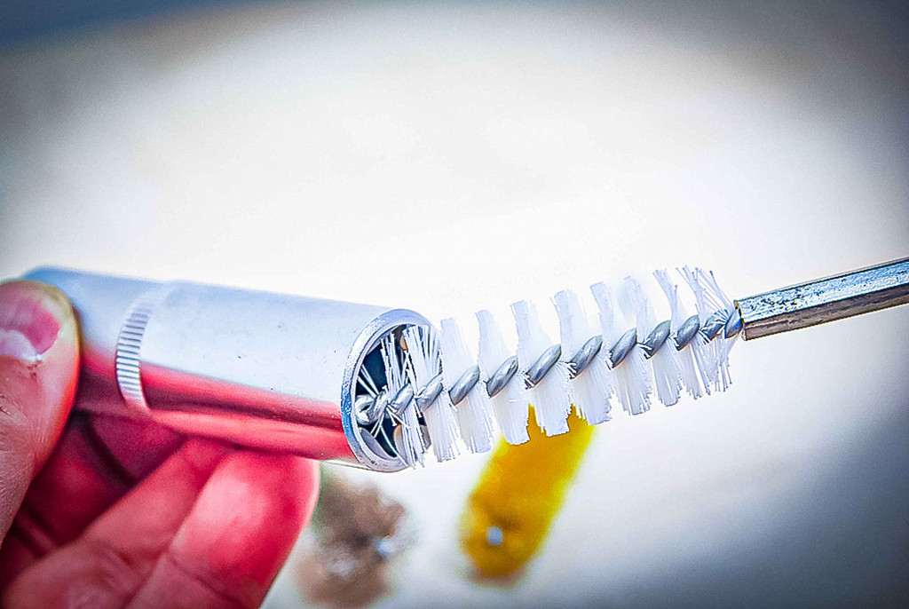 Za poliranje in čiščenje strojev, avtomobilov in drugih delovnih kosov iz kovine, plastike, lesa itd., Pogon 6,3 mm (1/4"), Ø 9 - 11 - 13 - 15 - 17 - 19 mm, V praktični najlonski vrečki, Vsebuje naslednja orodja: 6 medenih ščetk, 6 najlonskih ščetk, 6 nerjavnih jeklenih ščetk, 1 podaljšek 150 mm s hitrim sprostitvenim mehanizmom za uporabo z električnim orodjem, 1 ročaj z mehkimi oprijemi 140 mm s hitrim sprostitvenim mehanizmom za ročno uporabo.