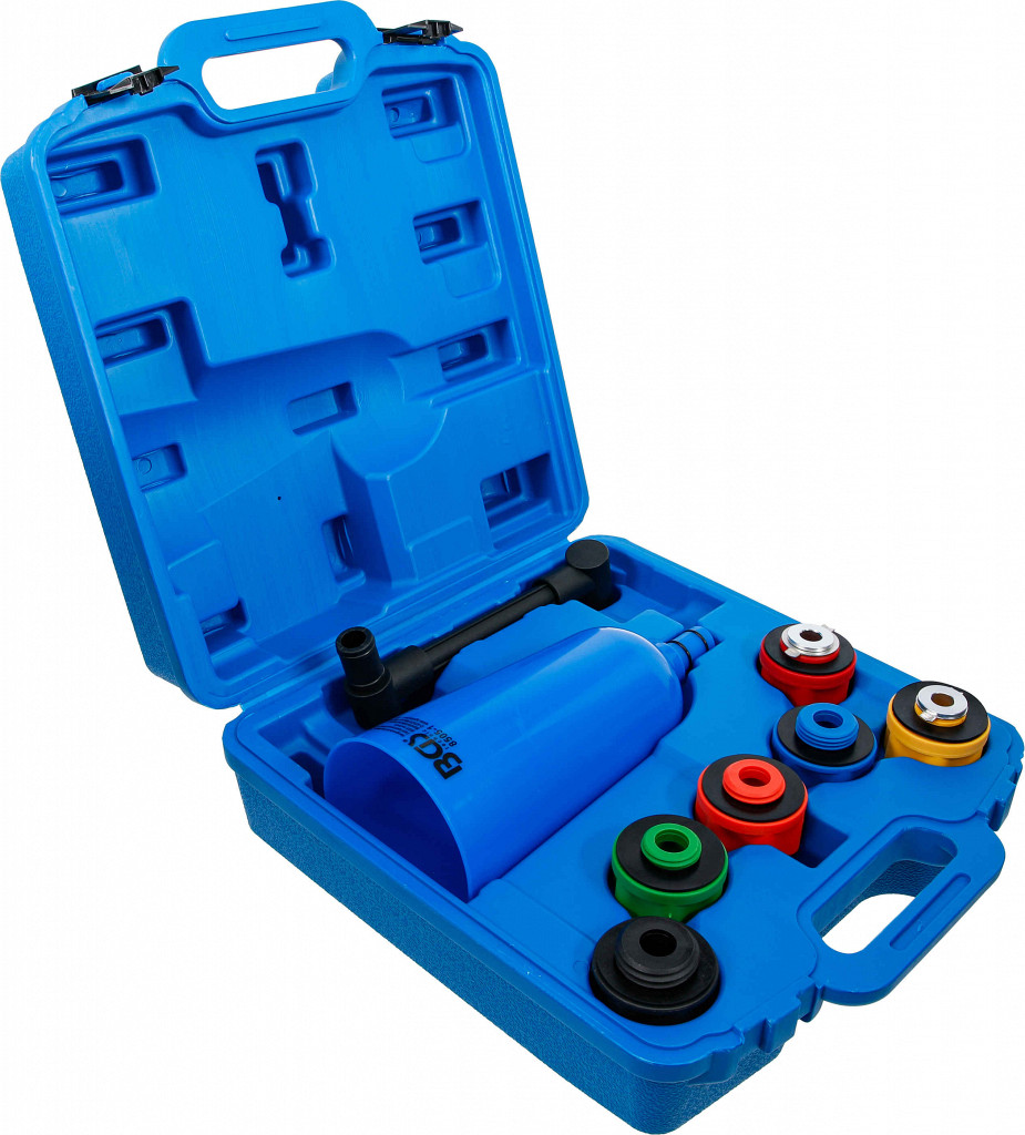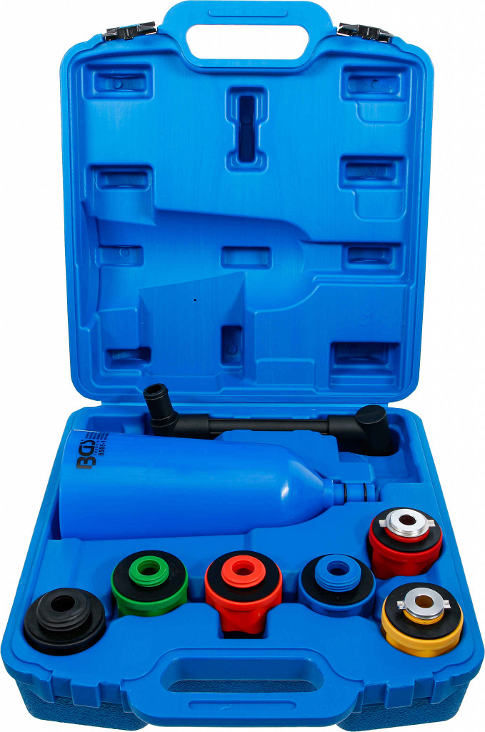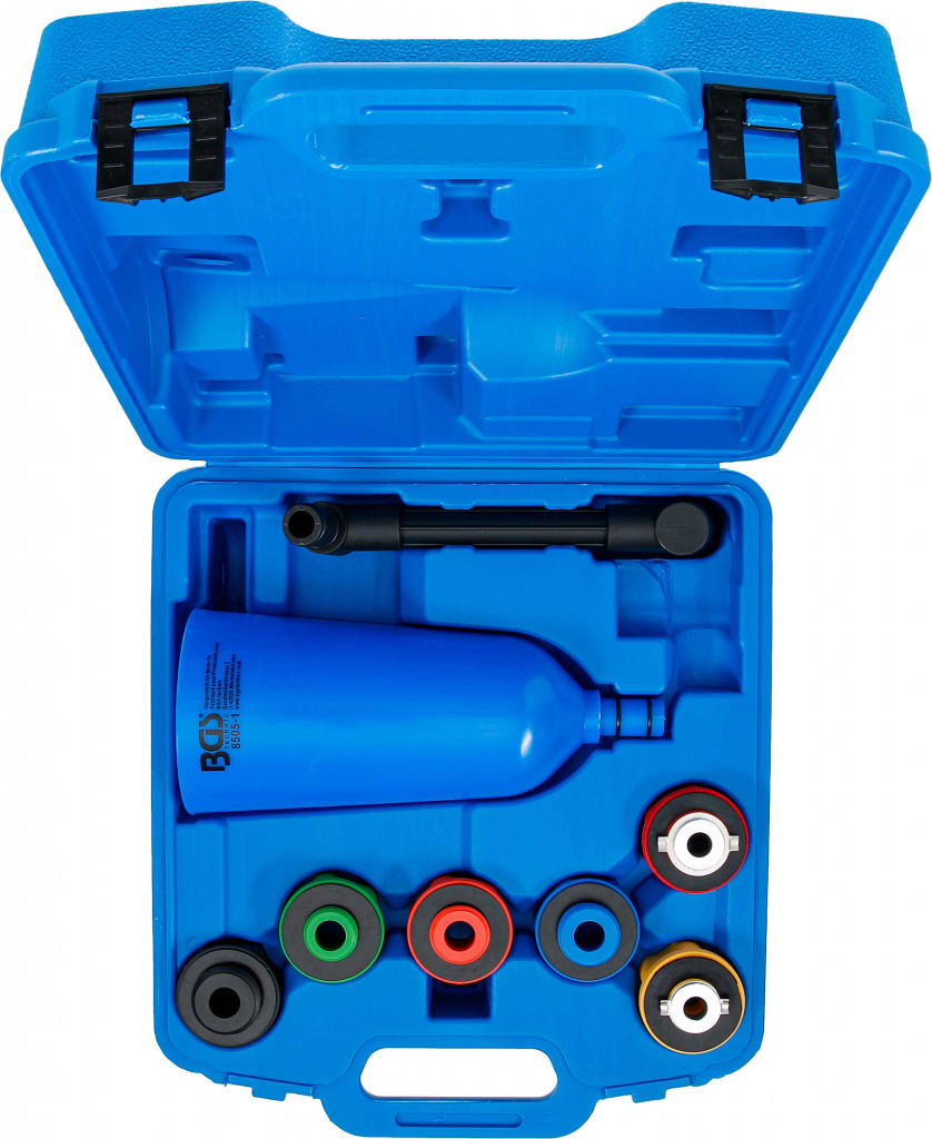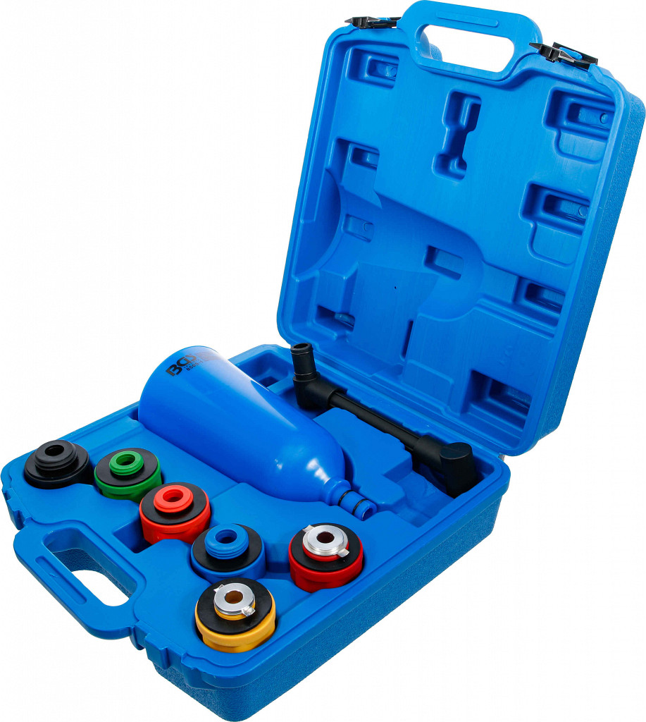 Omogoča hitro dolivanje olja brez razlitja, idealno za številne nove modele vozil, lijak 2 litra ustreza adapterjem za širok spekter uporabe, barvno označeni adapterji za odprtino za olje, poseben kotni podaljšek z vrtljivo funkcijo za težko dostopna mesta. Adapterji: bajonetni za Audi, BMW, Dodge, Mercedes-Benz, Porsche, Volvo, VW; navojni M42 x 4.5 za Subaru; navojni M37 x 3.0 za Toyota, Lexus, Scion, Pontiac; navojni M35 x 4.0 za Mazda; navojni M32 x 3.5 za Dodge, Honda, Acura, Nissan, Jaguar, Ford; bajonetni za Toyota & Lexus 3.0 & 3.3L V6.