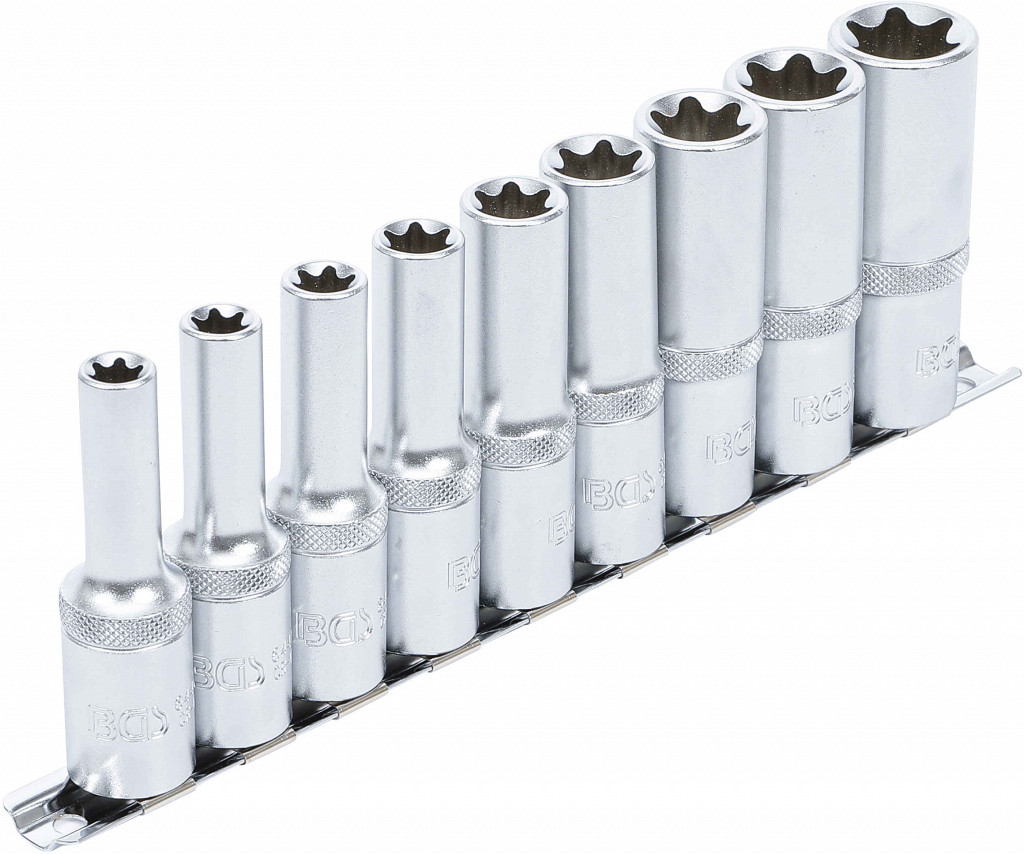 Ribano ohišje, vključuje naslednja orodja: E-nasadni ključi, dolžina približno 80 mm, 12,5 mm (1/2") pogon: E10, E11, E12, E14, E16, E18, E20, E22 in E24.