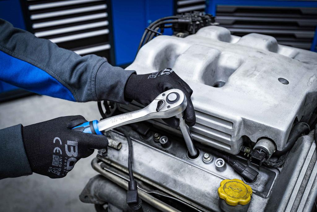 Vsebuje najpogosteje uporabljena orodja v avtomobilski industriji: 1/4" pogon: raglja s hitrim sproščanjem, 13 nasadnih ključev 4–14 mm, 7 podaljšanih 4–10 mm, 5 E-tip E4–E8, podaljška 50 in 100 mm, univerzalni člen, bit adapter, spinner ročaj 150 mm, drsni T-ročaj, 30 bitov (ravni 4–7 mm, križni PH0–2 in PZ0–2, imbus 3–6 mm, Torx in varnostni Torx T8–T30). 3/8" pogon: raglja, 10 nasadnih ključev 10–19 mm, 6 podaljšanih 10–15 mm, 6 E-tip E10–E18, podaljšek 125 mm, svečnik 18 mm, univerzalni člen, adapterji. 1/2" pogon: raglja, 17 nasadnih ključev 10–32 mm, 5 podaljšanih 16–22 mm, 2 E-tip E20–E24, podaljška 125 in 250 mm, drsni adapter, svečnika 16 in 21 mm, univerzalni člen, 27 bitov (Torx in varnostni Torx, spline, Ribe, imbus). Dodatno: biti z 1/4", 5/16", 3/8" in 9/16" pogonom (Torx, varnostni Torx, Ribe, imbus, TS-Star) ter kombinirani ključi 8–19 mm in inbus ključi 1,27–5 mm.