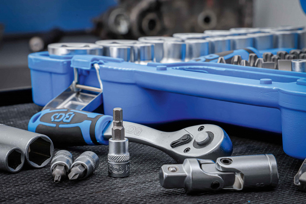 Obseg: 7 inbus ključev 1.27–5 mm. Biti z 8 mm pogonom: ravni 8–12 mm, križni PH3–PH4 in PZ3–PZ4, imbus 9/32"–9/16", Torx T40–T70, varnostni Torx T40–T70. Biti z 1/4" pogonom: Torx T5–T40, varnostni Torx T7–T40, Ribe M5–M9, XZN M5–M8, TS-Star TS10–TS45, križni PH1–PH2 in PZ1–PZ2, imbus 2–2.5 mm. 1/4" pogon: raglja, drsni ročaj, podaljška 50 in 100 mm, univerzalni člen, spinner ročaj 150 mm, 13 nasadnih ključev 5/32"–9/16", 7 podaljšanih 5/32"–3/8", 5 E-tip E4–E8, bit adapter, 30 bitov (Torx, varnostni Torx, imbus, križni, ravni). 3/8" pogon: raglja, podaljšek 125 mm, univerzalni člen, svečnik 18 mm, 10 nasadnih ključev 3/8"–25/32", 6 podaljšanih, 6 E-tip E10–E18, bit adapter. 1/2" pogon: raglja, podaljška 125 in 250 mm, drsni adapter, bit adapter, univerzalni člen, svečnika 16 in 21 mm, 17 nasadnih ključev 3/8"–1.1/4", 5 podaljšanih 5/8"–7/8", 2 E-tip E20–E24.