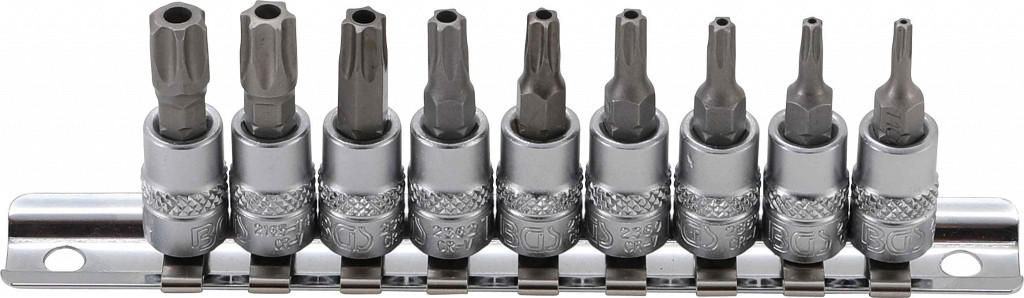 Nazobčano; na letvi za nasadne ključe. V obsegu: bit nastavki 6,3 mm (1/4") T-Star tamperproof (Torx) T10–T50.