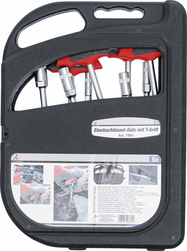 T-ročni nasadni ključi, skupna dolžina približno 270 mm, šesterokotniki 6–14 mm.