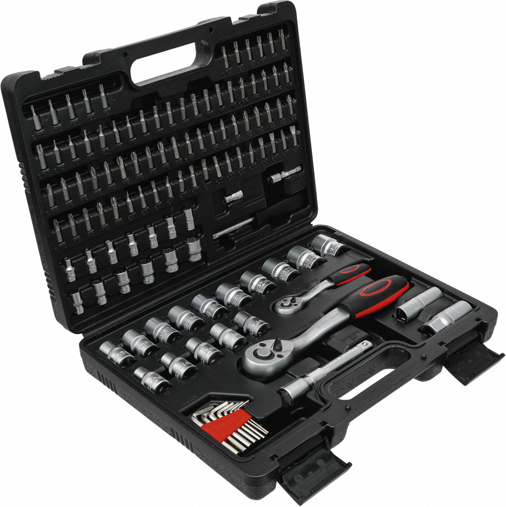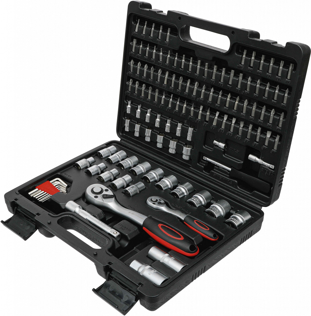 Obseg dobave: Orodja s 6,3 mm (1/4") pogonom: 1 obojestranska raglja s finimi zobmi (72 zob) (BGS 517); 13 nasadnih ključev Super Lock 4 / 4,5 / 5 / 5,5 / 6 / 7 / 8 / 9 / 10 / 11 / 12 / 13 / 14 mm; 1 adapter za nastavke z zaklepno kroglico 6,3 mm (1/4") – notranji šesterokotnik 6,3 mm (1/4"); 1 podaljšek dolžine 50 mm. Orodja z 12,5 mm (1/2") pogonom: 1 obojestranska raglja s finimi zobmi (72 zob) (BGS 519); 15 nasadnih ključev Super Lock 10 / 11 / 12 / 13 / 14 / 15 / 16 / 17 / 18 / 19 / 20 / 21 / 22 / 23 / 24 mm; 2 šesterokotni nasadni ključ za svečke 16 in 21 mm; 1 podaljšek dolžine 125 mm; 1 ročaj dolžine 150 mm. 71 nastavkov 6,3 mm (1/4") dolžine 25 mm: 15 ravnih SL 3 / 4 / 5 / 5,5 / 6 / 7 mm; 15 križnih PH1 / PH2 / PH3; 15 križnih PZ1 / PZ2 / PZ3; 12 Torx T-Star T10 / T15 / T20 / T25 / T27 / T30 / T35 / T40; 14 imbus 2 / 2,5 / 3 / 4 / 5 / 5,5 / 6 mm. 8 imbus ključev v obliki črke L: 1,5 / 2 / 2,5 / 3 / 4 / 5 / 5,5 / 6 mm.
