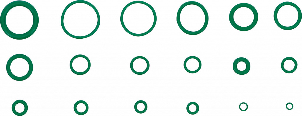 Komplet O-tesnil iz HNBR za klimatske cevi v plastični škatli: notranji Ø 3 mm, 4 mm, 4,5 mm, 5 mm, 6 mm, 7 mm, 8 mm, 9 mm, 10 mm, 12 mm, 13 mm, 14 mm, 17 mm, 18 mm, 20 mm, 22 mm.