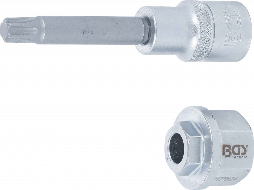 Izhodni profil: T-Star (za Torx); Velikost izhodnega profila: T50 ; Profil pogona: notranji kvadrat; Velikost profila pogona, palec: 1/2 "; Velikost profila pogona, metrična: 12,5 mm; Bruto teža: 180 g; Dolžina: 93 mm; Površinska obdelava: Satensko kromirano; Uporablja se kot OEM1: 414-009 | 414-009/1 | 414-009/2 Ford
