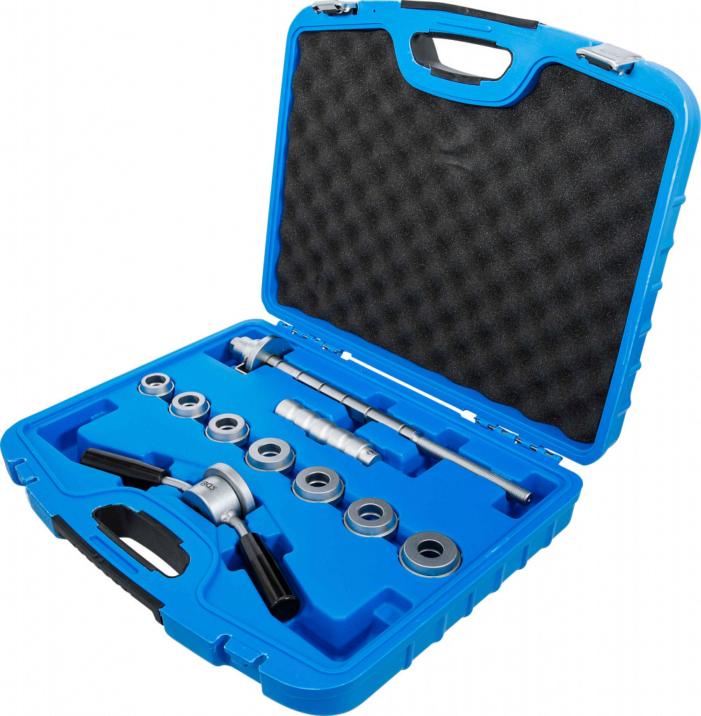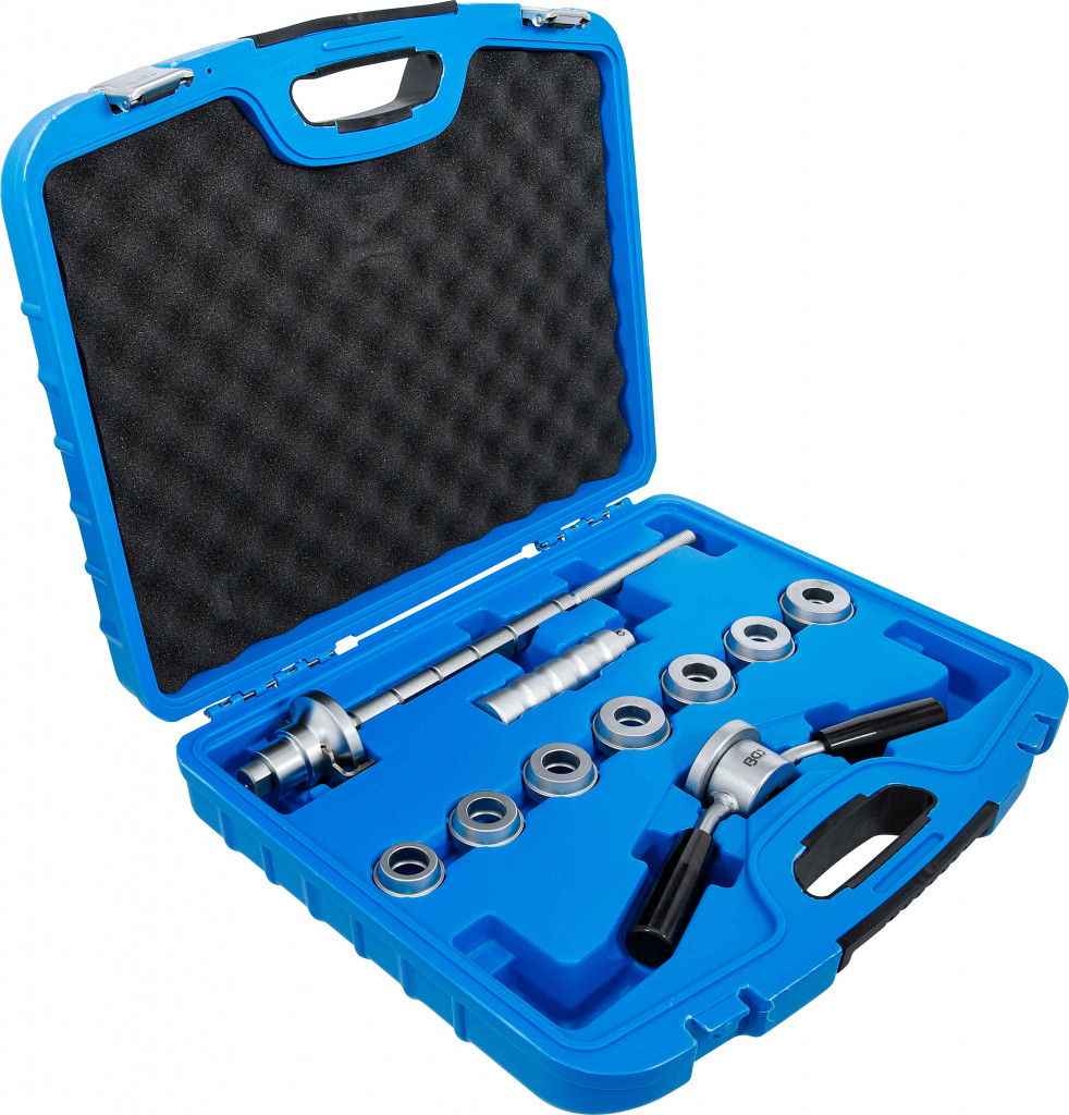 Set za montažo ležajev in tesnil pri motorjih Kawasaki, Honda in Harley Davidson. Vsebina: stiskalnica, vijaki, podložke in obročki različnih premerov (32–46...