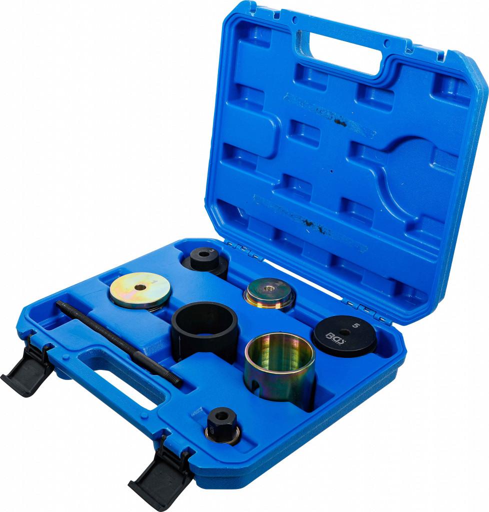Za demontažo in montažo dveh gumijastih puš sprednjega diferenciala v nosilcu zadnje osi, primerno za puše s številko OE 33 316 792 873 in primerljive puše drugih proizvajalcev. za naslednje modele vozil: 750i (F01) 4.4L V8, 750Li (F02) 4.4L V8, 535i GT (F07) 3.0L, 550i GT (F07) 4.4L V8550i GT xDrive (F07) 4.4L V8, 750i xDrive (F01) 4.4L V8, 750Li xDrive (F02) 4.4L V8760Li (F02) 6.0L V12, 528i (F10) 3.0L, 535i (F10) 3.0L, 535i GT xDrive (F07) 3.0L535i xDrive (F10) 3.0L, 550i (F10) 4.4L V8, 550i xDrive (F10) 4.4L V8, 740i (F01) 3.0L740Li (F02) 3.3.0L, 750i Active Hybrid (F04) 4.4L V8, 750Li Active Hybrid (F04) 4.4L V8Alpina B7 (F01) 4.4L V8, Alpina B7 xDrive (F01) 4.4L V8, Alpina B7L (F02) 4.4L V8Alpina B7L xDrive (F02) 4.4L V8, 528i (F10) 2.0L, 528i xDrive (F10) 2.0L,ActiveHybrid 5 (F10) 3.0L, 640i (F06) 3.0L, 650i (F06) 4.4L V8, 650i xDrive (F06) 4.4L V8740Li xDrive (F02) 3.0L, ActiveHybrid 7 (F02) 3.0L, M5 (F10) 4.4L V8, 535d (F10) 3.0L535d xDrive (F10) 3.0L, 640i xDrive (F06) 3.0L, M6 (F06) 4.4L V8, 740Ld xDrive (F02) 3.0LAlpina B6 xDrive (F06) 4.4L V8