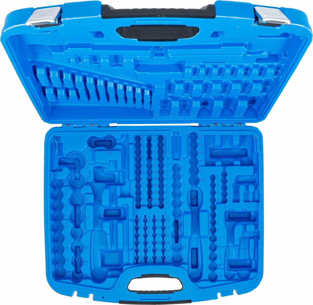 Standardni nasadni ključi v modelu »Gear-Lock« (šestkotni, 12-robni, colski, Torx). Obseg dobave: pogon 1/4" (6,3 mm): raglja 72 zob, drsni ročaj 150 mm,...