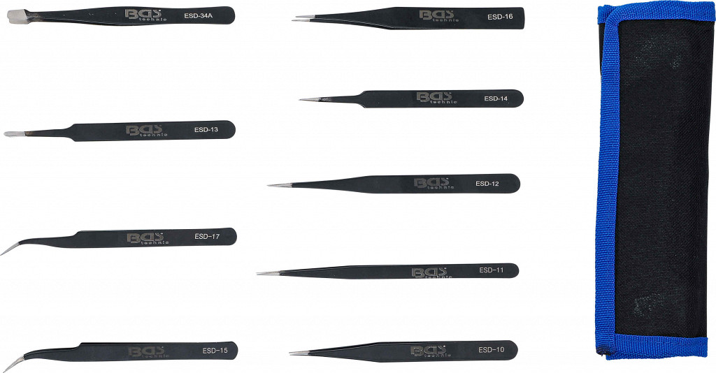 Visokokakovostna plastična pinceta z različnimi konicami s posebnim ESD premazomtalna površinaidealen za delo na občutljivih komponentah z maksimalno površinsko zaščitonatančni vrhovi z izjemno široko površino oprijema za udobno deloodporen na kislineantistatičen-nemagneten