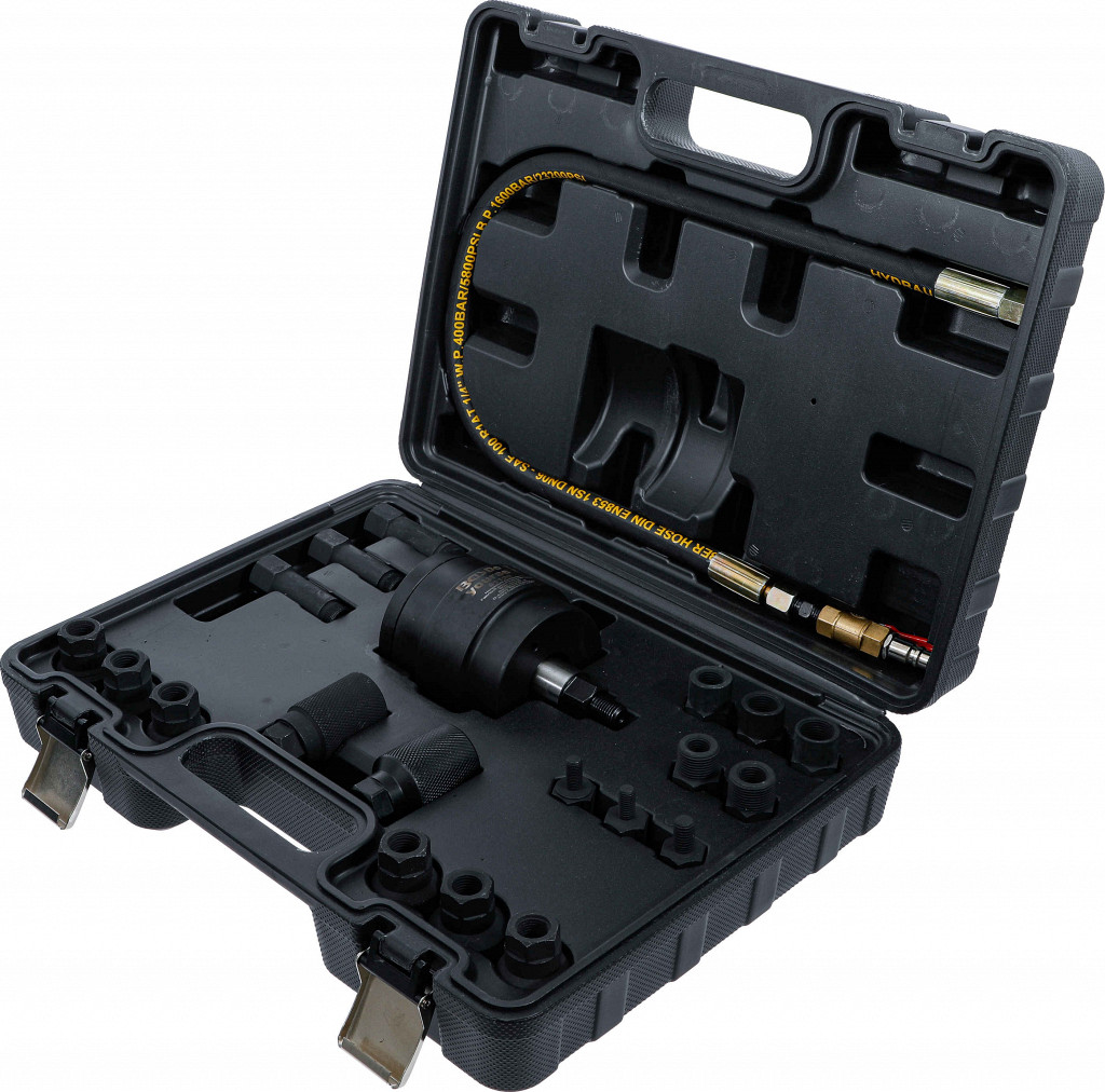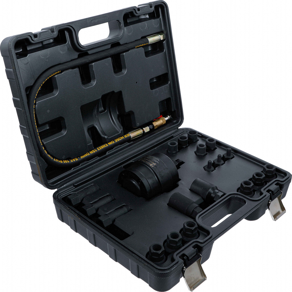 Za odstranitev posebej tesnih dizelskih injektorjev s stisnjenim zrakomdizelski injektorji se odstranijo iz glave cilindra s pnevmatskim učinkom udarnega koksanja in usedline rje se razbijejo, injektor pa se sprosti iz tesnilnega sedežaekstraktor se privije neposredno na fiksni injektor z uporabo ustreznega adapterjakompaktna zasnovavisok učinek udarcavključno s široko paleto adapterjev, primeren za najpogosteje uporabljene dizelske injektorje. Hod bata: 12 mm Hitrost dviganja: 2500 na minuto Vibracijska ročica (os X): 19,28 m / vibracijska ročica (os Y): 10,47 m / vibracijska ročica (os Z): 64,57 m / vibracijska ročica (sinteza): 68,19 m / s. Obseg dobave: 1 pnevmatski vbrizgalnik1 adapter za stisnjen zrak s stisnjenim zračnim ventilom1 adapter za zunanji navoj M20 x 11 adapter za zunanji navoj M18 x 0,751 adapter za zunanji navoj M17 x 11 adapter za notranji navoj M14 x 1,51 adapter za notranji navoj M16 x 1,51 adapter za notranji navoj M18 x 1,51 adapter za zunanji navoj M20 x 1,5 / M12 x 1,51 adapter za zunanji navoj M22 x 1,5 / M14 x 1,51 adapter za zunanji navoj M8 x 11 adapter za zunanji navoj M8 x 11 adapter za zunanji navoj M10 x 1,51 adapter za notranji navoj M26 x 0,751 adapter za notranji navoj M31 x 0,751 adapter za notranji navoj M25 x 0,51 adapter za notranji navoj M25 x 11 adapter za notranji navoj M27 x 0,751 adapter za notranji navoj M27 x 11 adapter za notranji navoj M29 x 11 adapter za notranji navoj M27 x 1