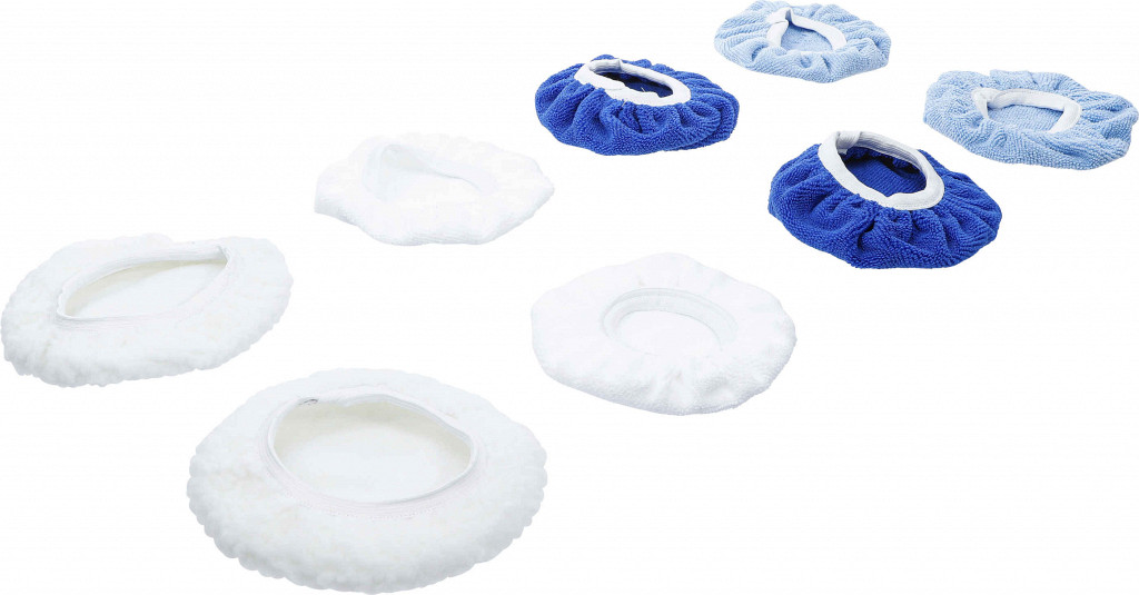 Primerno za različna polirana dela in čiščenje lakov na vozilih in površinah vozilZasnovan za uporabo s stroji za poliranjeod osnovnega čiščenja do končnega poliranja, vse aplikacije v enem kompletunamenjeni za poliranje diskov s premerom 125 mmprimerno za obdelavo komercialno dostopnih in brez topil za poliranje blazinic iz mikrovlaken so univerzalno uporabne za uporabo na avtomobilski notranji plastiki ter za vosek in barvanje na blazinicah iz šasivolne, primerne za končno poliranje z visokim sijajem.obseg dobave:... 2 koralni žametni blazinici | svetlo modra | Ø 125 mm2 blazinice za poliranje iz mikrovlaken | temno modra | Ø 125 mm2 blazinice za poliranje iz mikrovlaken | bela | Ø 125 mm2 volnene blazinice | bela | Ø 125 mm