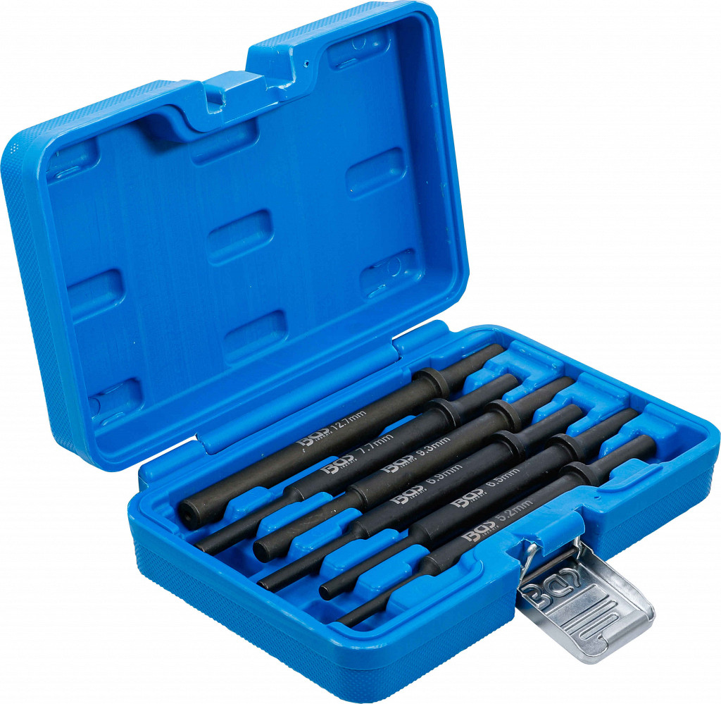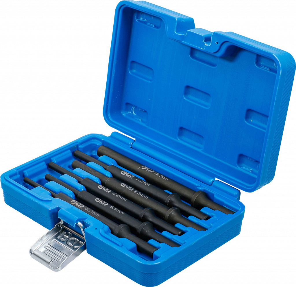 Izvlečno orodje za gredi in vijake, ki so zataknjeni v globokih luknjah, z okroglim steblom Ø 10 mm in šestimi najbolj uporabljenimi velikostmi 5,2 – 12,7 mm.