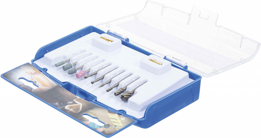 Set rezkarjev in brusov za male dele, za brušenje, graviranje in rezkanje, največja hitrost 35.000 obr./min, premer stebla 3 mm, vključeni adapterji za 5 mm...