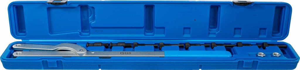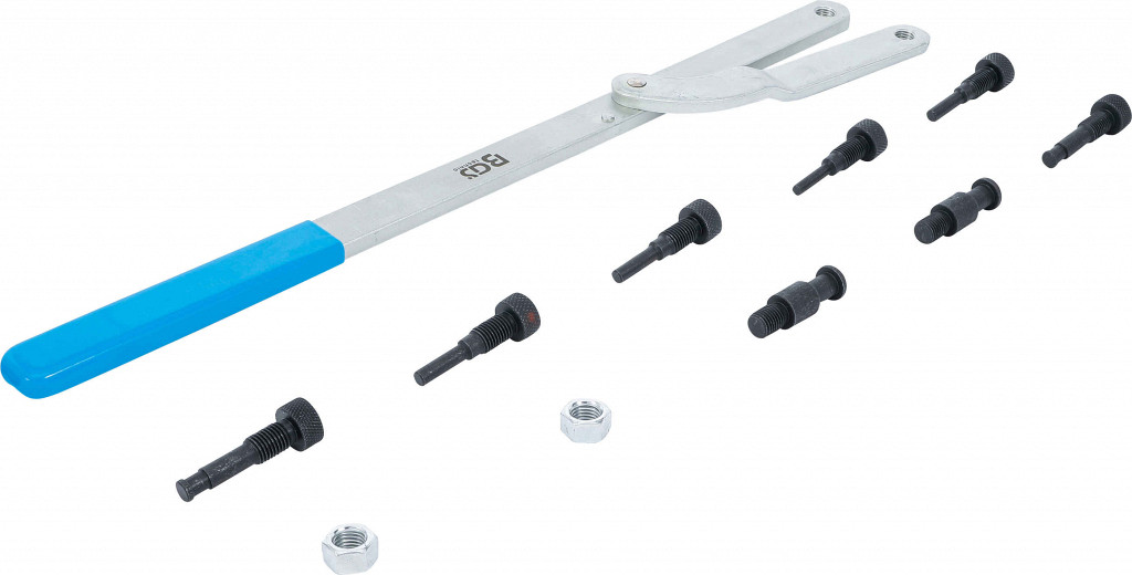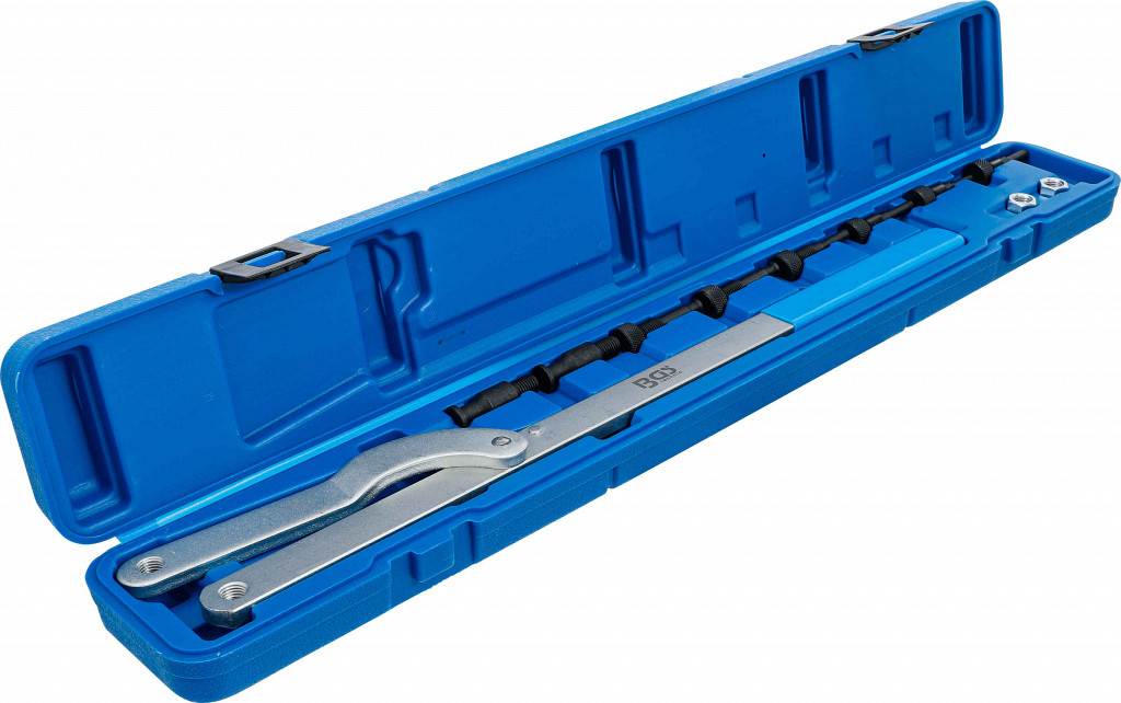 nastavljivo od 40 do 220 mm; zaradi skupne dolžine približno 400 mm in s tem povezanim navorom idealno npr. za odvijanje vijaka na črpalkah za vbrizgavanje; za blokado odmične gredi ali dizelske črpalke; za jermenske in verižne pogone; za napenjanje in sproščanje blokirnih zatičev; vključno s 4 pari pritrdilnih zatičev Ø 6–16 mm za uporabo skoraj pri vseh zobnikih odmične gredi