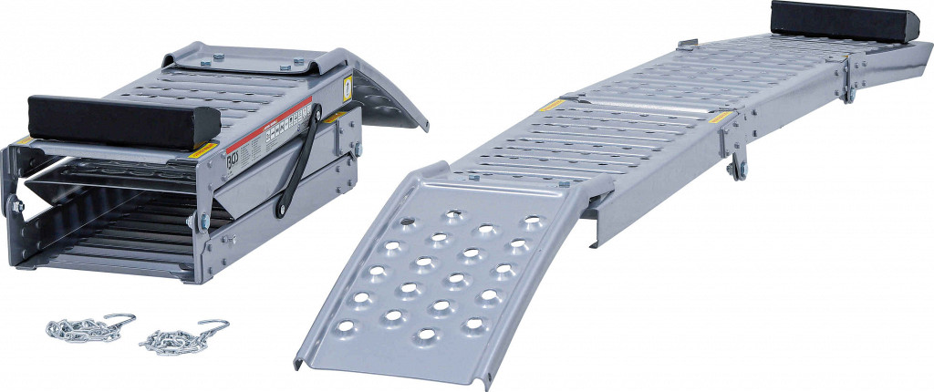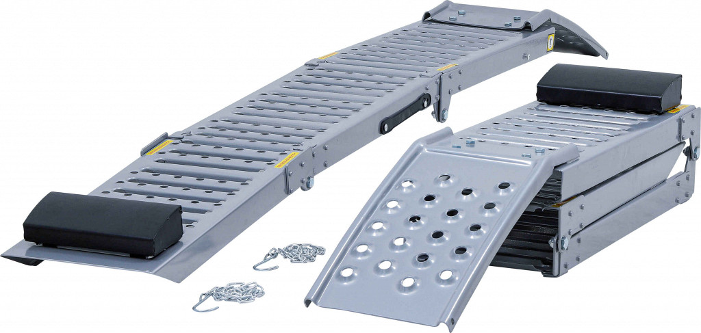 Večnamenska in mobilna izvedba. Za nakladanje in razkladanje štirikolesnikov, motornih koles, kosilnic ipd. Uporabno tudi kot stojalo za vozila, ko je zloženo. Prihrani prostor, saj se zloži. Ročaj za enostaven transport. Primerno za prikolice z višino nakladanja 700 do 900 mm. Prevozno s širino pnevmatike do 250 mm. Največja nosilnost na rampo: 800 kg (zložena), 250 kg (raztegnjena). Dimenzije zložene: 900 x 250 x 150 mm. Skupna dolžina raztegnjene: 2000 mm.