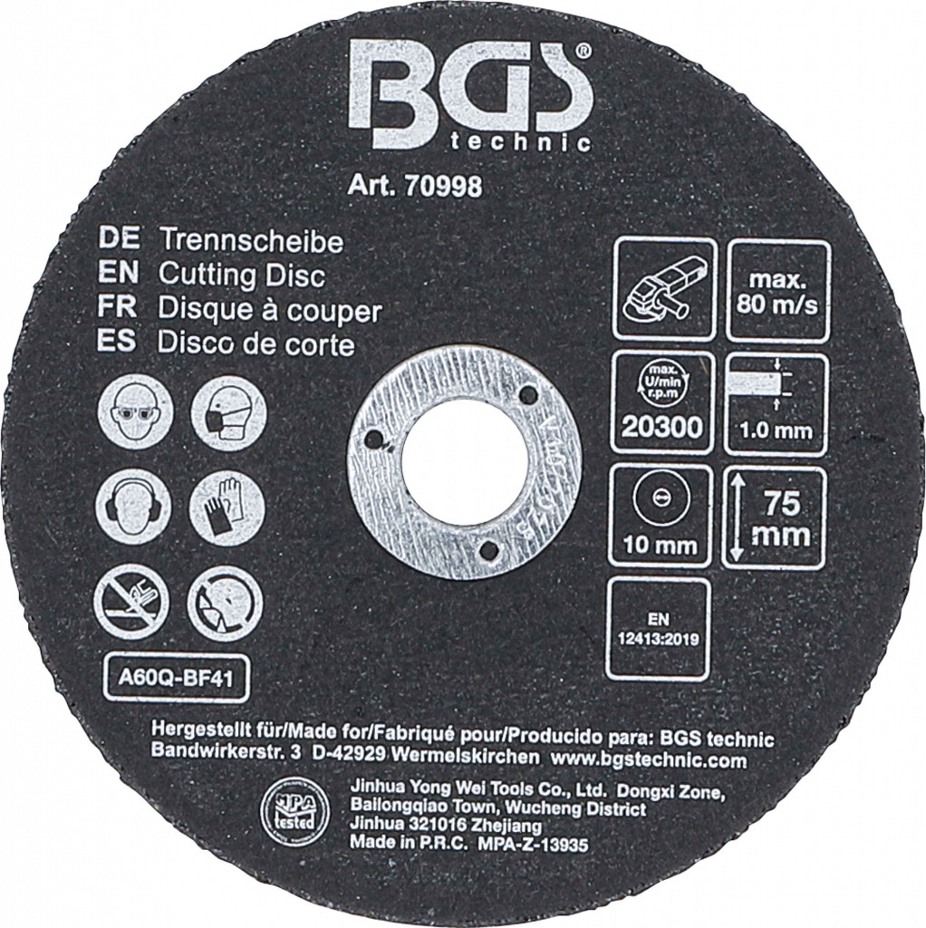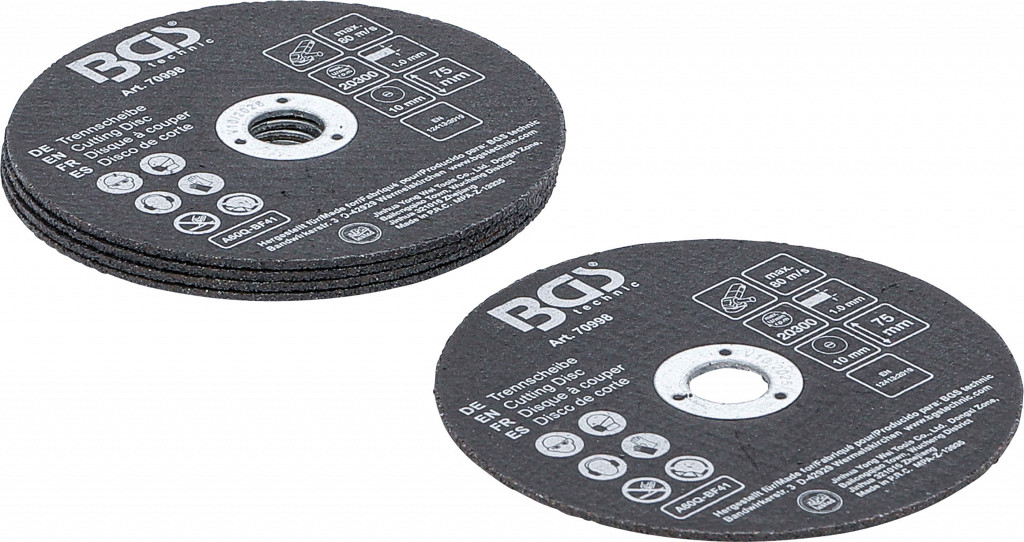 Premer izvrtine: 10 mm; Bruto teža: 78 g; Premer: 75 mm; Vrtilni hod v prostem teku: 20300 vrt./min
