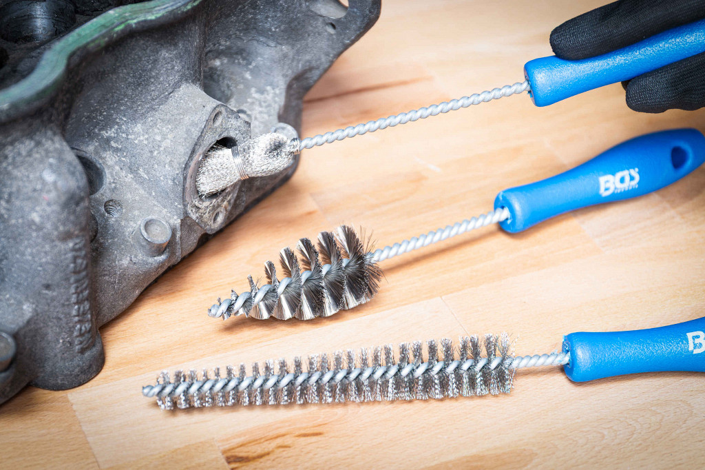 Za učinkovito čiščenje sedežev in gredi injektorjev na dizelskih motorjihprimerno za široko paleto vozil in motorjevkompaktna sestavačistilne ščetke različnih oblik in premerovobrezovanje krtačic iz nerjavečega jeklacinkana grdrobusten plastični ročaj.obseg dobave:... 1 ščetka s spiralno cevjo, dolžina krtače 80 mm, širina krtače 35 mm, skupna dolžina 275 mm1 ščetka s spiralno cevjo dolga, dolžina krtače 150 mm, širina krtače 25 mm, celotna dolžina 290 mm1 krtača z ravnim dnom, dolžina krtače 50 mm, širina krtače 17 mm, celotna dolžina 260 mm