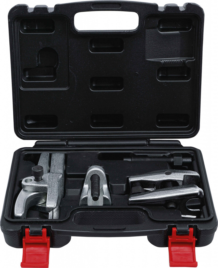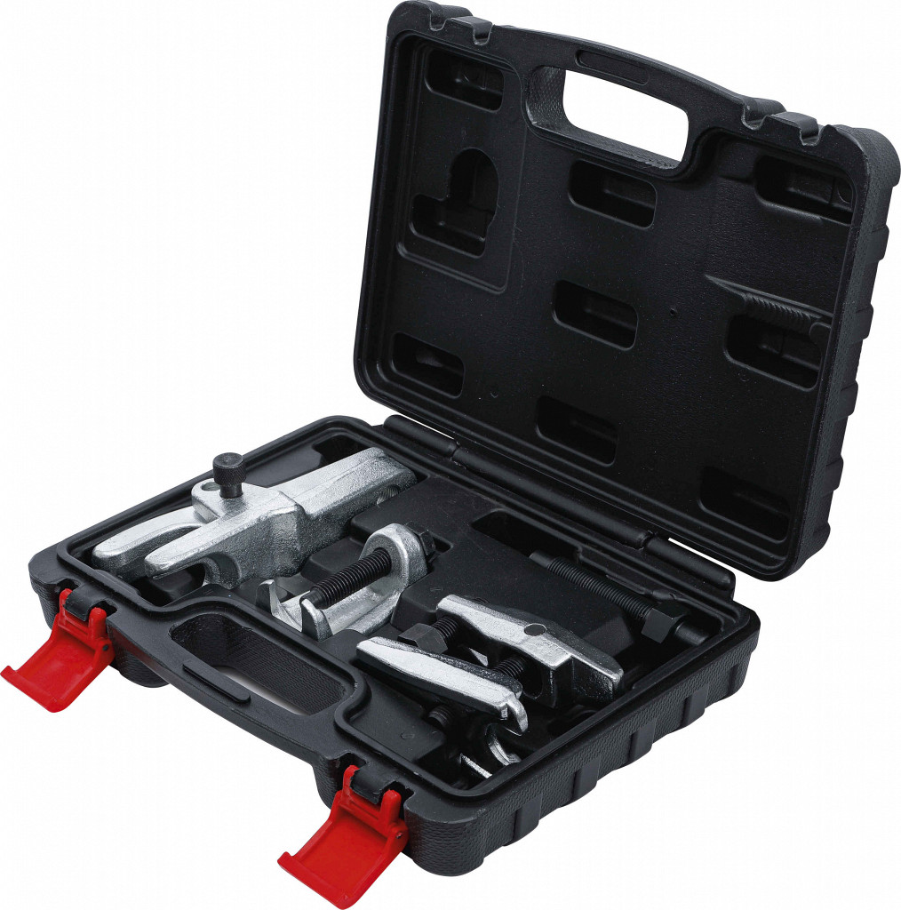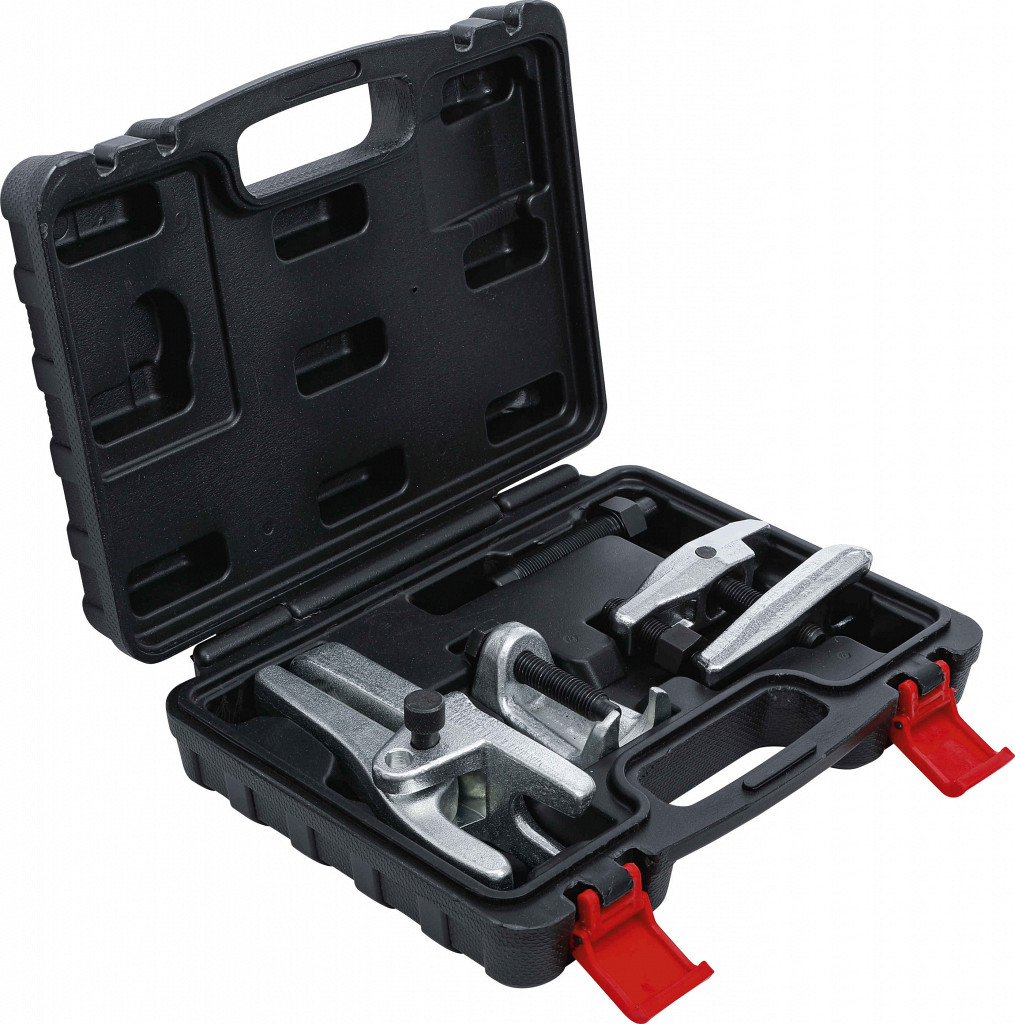 Set snemalcev krogličnih zglobov; vsebuje tri izvlečne snemalce za ločevanje zglobov volana in vzmetenja; različne velikosti čeljusti in navojnih vreten; kovano in pocinkano.