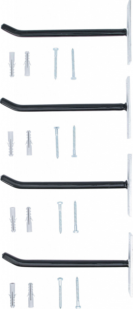 Primerno za večino komercialno dostopnih platiščuniverzalno uporabno za shranjevanje orodja, kablov itd.ustvarite prostor v vaši garaži, hobi sobi ali kleti na enostaven in hiter načinčrna izolacija za zaščito občutljivega materialapreprečuje zdrs ali praske na površinienostavna montaža stene prihrani dragocen delovni prostor v vaši delavnici ali garažipredhodno izvrtane pritrdilne luknje za vgradnjo na steno, vključno s pritrdilnim materialomDimenzije montažne plošče 120 x 40 mm.Obseg dobave: . 4 stenske kljuke za platišča, vijaki 250 mm8, 60 mm, zunanji šesterokotnik 10 mm8 moznikov, 10 x 50 mm