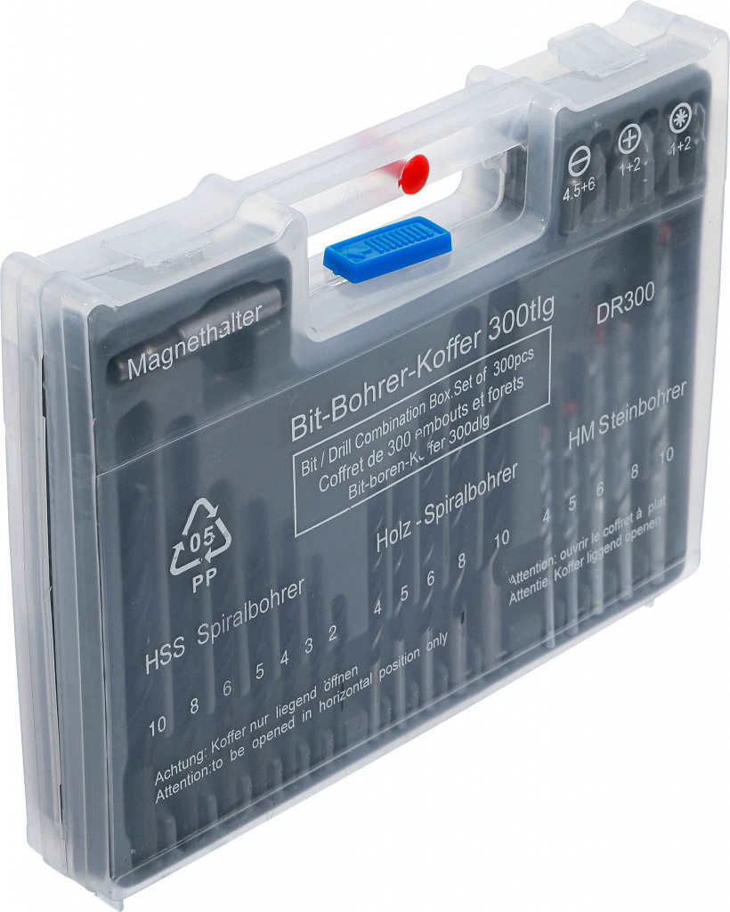 Set kovinskih, lesnih in zidnih svedrov ter bitov v plastičnem kovčku, obseg dobave: kovinski Ø 2–10 mm, lesni Ø 4–10 mm, zidni Ø 4–10 mm, nastavki in vložki