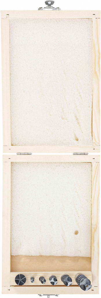 5 rezalnih glav s središčnim konico, 4 ramena, spiralni profil, hitro odvajanje odrezkov, natančno vrtanje in rezkanje, mere 4–6–8–10–12 mm in 13 mm stožčnik