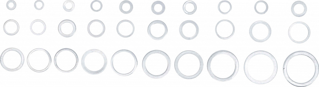 Komplet bakrenih tesnilnih obročkov za izpustne čepe olja v plastični škatli: 10 kosov 5 x 9 x 1,0 mm, 10 kosov 8 x 14 x 1,5 mm, 10 kosov 12 x 16 x 1,0 mm, 10 kosov 14 x 20 x 1,5 mm, 10 kosov 18 x 24 x 1,5 mm, 10 kosov 22 x 30 x 1,5 mm, 10 kosov 6 x 10 x 1,0 mm, 10 kosov 9 x 14 x 1,0 mm, 10 kosov 12 x 16 x 1,5 mm, 10 kosov 14 x 20 x 2,0 mm, 10 kosov 20 x 24,5 x 1,5 mm, 10 kosov 22 x 29 x 1,5 mm, 10 kosov 6 x 12 x 1,0 mm, 10 kosov 10 x 14 x 1,0 mm, 10 kosov 12 x 18 x 1,5 mm, 10 kosov 16 x 20 x 1,5 mm, 10 kosov 20 x 24,5 x 0,8 mm, 10 kosov 24 x 32 x 2,0 mm, 10 kosov 8 x 12 x 1,0 mm, 10 kosov 10 x 14 x 1,5 mm, 10 kosov 13 x 18 x 1,0 mm, 10 kosov 16 x 22 x 1,5 mm, 10 kosov 19 x 26 x 2,0 mm, 10 kosov 26 x 34 x 2,0 mm, 10 kosov 8 x 14 x 1,0 mm, 10 kosov 10 x 16 x 1,0 mm, 10 kosov 14 x 18 x 1,5 mm, 10 kosov 18 x 22 x 1,5 mm, 10 kosov 22 x 27 x 1,0 mm, 10 kosov 28 x 36 x 2,0 mm.