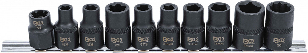 10S, šesterokotno, za Toyota. 6S, šesterokotno, za Nissan in Renault sklopko. 8S, 6-robno, za Nissan glavo motorja in balansirno gred. 12S, 6-robno, za Nissan glavo motorja. 8TS, 3-robno, za Nissan balansirno gred. 10 mm, 5-robno, za zavorne sisteme. 12.5 mm, 5-robno, za Nissan črpalko za gorivo. 14 mm, 5-robno, za GM in Smart. 19 mm, 5-robno, za Peugeot, Renault in Citroen parkirno zavoro. 20 mm, 10-robno, za spodnjo roko Honda Civic. Dolžina 38 mm.