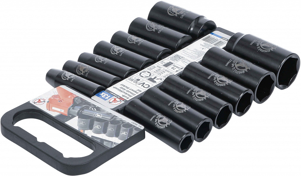 Primerno za udarne ključe. Obseg dobave: Vtičnica, šesterokotnik 10, zmogljivost 153 NmVtičnica, šesterokotnik 13, zmogljivost 249 NmVtičnica, šesterokotnik 14, zmogljivost 282 NmVtičnica, šesterokotnik 15, zmogljivost 339 NmVtičnica, šesterokotnik 17, zmogljivost 475 NmVtičnica, šesterokotnik 18, zmogljivost 542 NmVtičnica, šesterokotnik 19, zmogljivost 565 NmVtičnica, šesterokotnik 21, zmogljivost 570 NmVtičnica, šesterokotnik 22, zmogljivost 570 NmVtičnica, šesterokotnik 24, zmogljivost 570 NmVtičnica, šesterokotnik 27, zmogljivost 570 NmVtičnica, šesterokotnik 30, zmogljivost 570 NmVtičnica, šesterokotnik 32, zmogljivost 570 Nm
