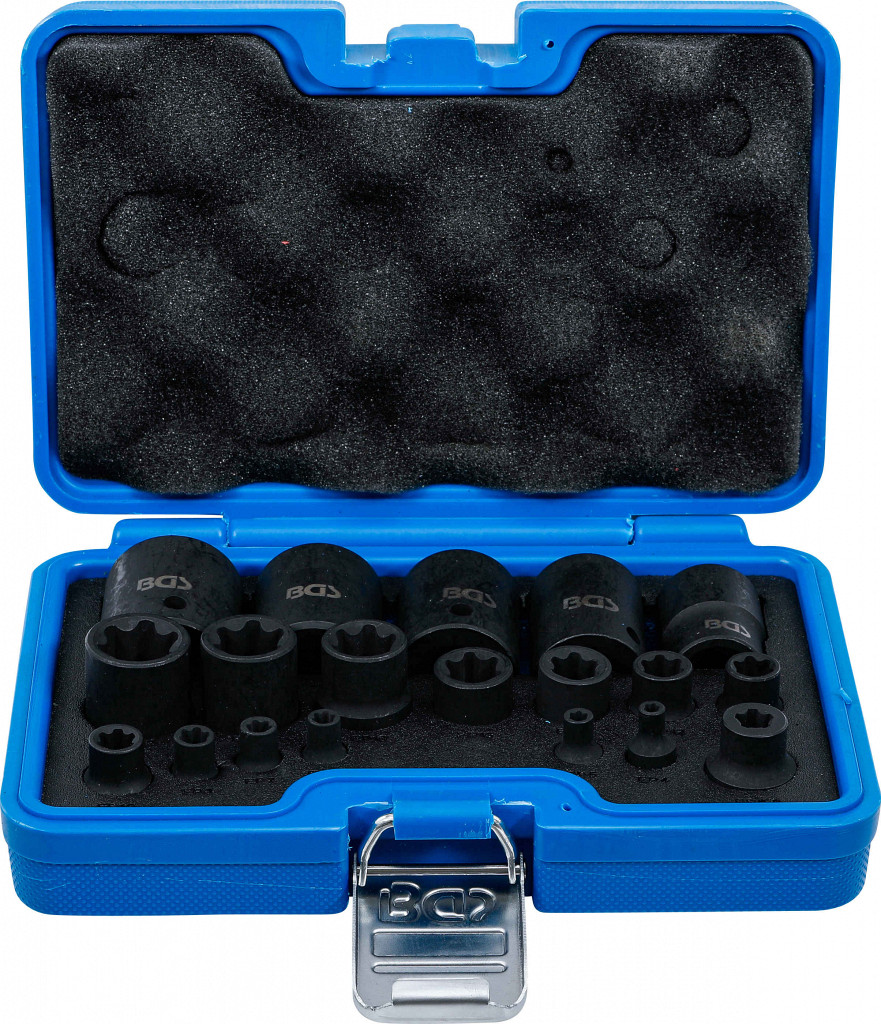 Kompaktna kompletna sestava z vsemi običajnimi velikostmiposeben vtični ključ za rahljanje in zategovanje vijakov Torx Plus (6 pt.)ravna oblika profila zagotavlja dejanski pogonski kot 0 ° za ročne in udarne ključe, ki jih je mogoče pritrditi na udarni ključ z zatičem in O-obročemposebno vtičnico, primerno za 5-stranske vijake TP-Star (za Torx Plus), ki se uporabljajo v modelih vozil Tesla. 1 udarna vtičnica | 6,3-milimetrski (1/4-palčni pogon) | T-Star Plus (za Torx Plus) | EP41 udarna vtičnica | 6,3-milimetrski (1/4-palčni pogon) | T-Star Plus (za Torx Plus) | EP51 udarna vtičnica | 6,3-milimetrski (1/4-palčni pogon) | T-Star Plus (za Torx Plus) | EP61 udarna vtičnica | 6,3-milimetrski (1/4-palčni pogon) | T-Star Plus (za Torx Plus) | EP71 udarna vtičnica | 6,3-milimetrski (1/4-palčni pogon) | T-Star Plus (za Torx Plus) | EP81 udarna vtičnica | 10-milimetrski (3/8-palčni pogon) | T-Star Plus (za Torx Plus) | EP101 udarna vtičnica | 10-milimetrski (3/8-palčni pogon) | T-Star Plus (za Torx Plus) | EP111 udarna vtičnica | 10-milimetrski (3/8-palčni pogon) | T-Star Plus (za Torx Plus) | EP121 udarna vtičnica | 10-milimetrski (3/8-palčni pogon) | T-Star Plus (za Torx Plus) | EP141 udarna vtičnica | 10-milimetrski (3/8-palčni pogon) | T-Star Plus (za Torx Plus) | EP161 udarna vtičnica | 12,5-milimetrski (1/2-palčni pogon) | T-Star Plus (za Torx Plus) | EP181 udarna vtičnica | 12,5-milimetrski (1/2-palčni pogon) | T-Star Plus (za Torx Plus) | EP201 udarna vtičnica | 12,5-milimetrski (1/2-palčni pogon) | T-Star Plus (za Torx Plus) | EP221 udarna vtičnica | 12,5-milimetrski (1/2-palčni pogon) | T-Star Plus (za Torx Plus) | EP241 udarna vtičnica | 12,5-milimetrski (1/2-palčni pogon) | T-Star Plus (za Torx Plus) | EP261 udarna vtičnica | 12,5-milimetrski (1/2-palčni pogon) | T-Star Plus (za Torx Plus) | EP281 udarna vtičnica | 12,5-milimetrski (1/2-palčni pogon) | T-Star Plus (za Torx Plus) | EP301 udarna vtičnica | 12,5-milimetrski (1/2-palčni pogon) | T-Star Plus (za Torx Plus) | EP321 udarna vtičnica | 12,5-milimetrski (1/2-palčni pogon) | T-Star Plus (za Torx Plus) | EP8.8