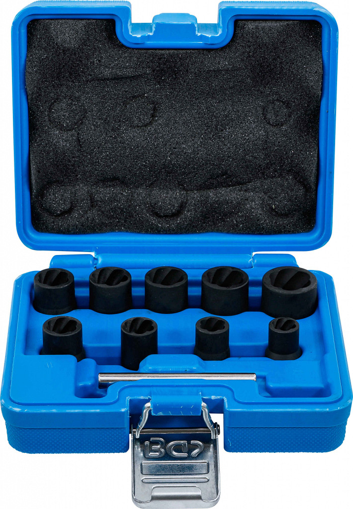 Za odvijanje poškodovanih vijakov in matic. Spiralni profil omogoča varno odvijanje. Vsebina: posebne vtičnice Twist, pogon 10 mm (3/8"), dimenzije: 10–19 mm.