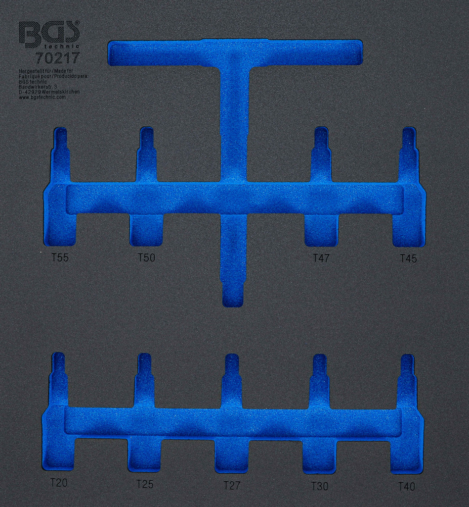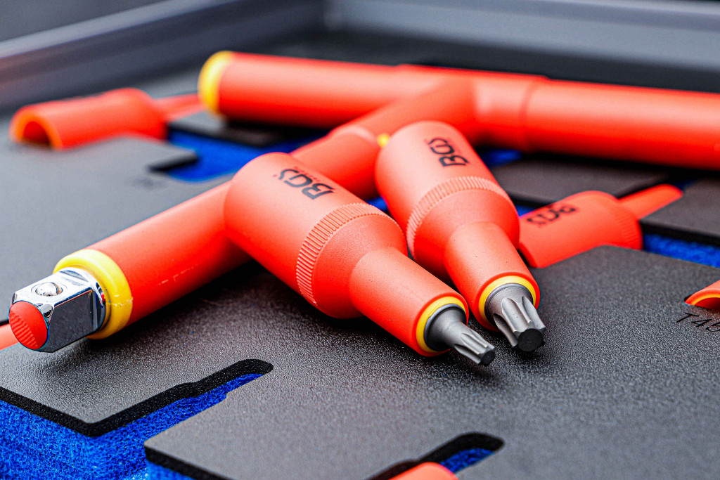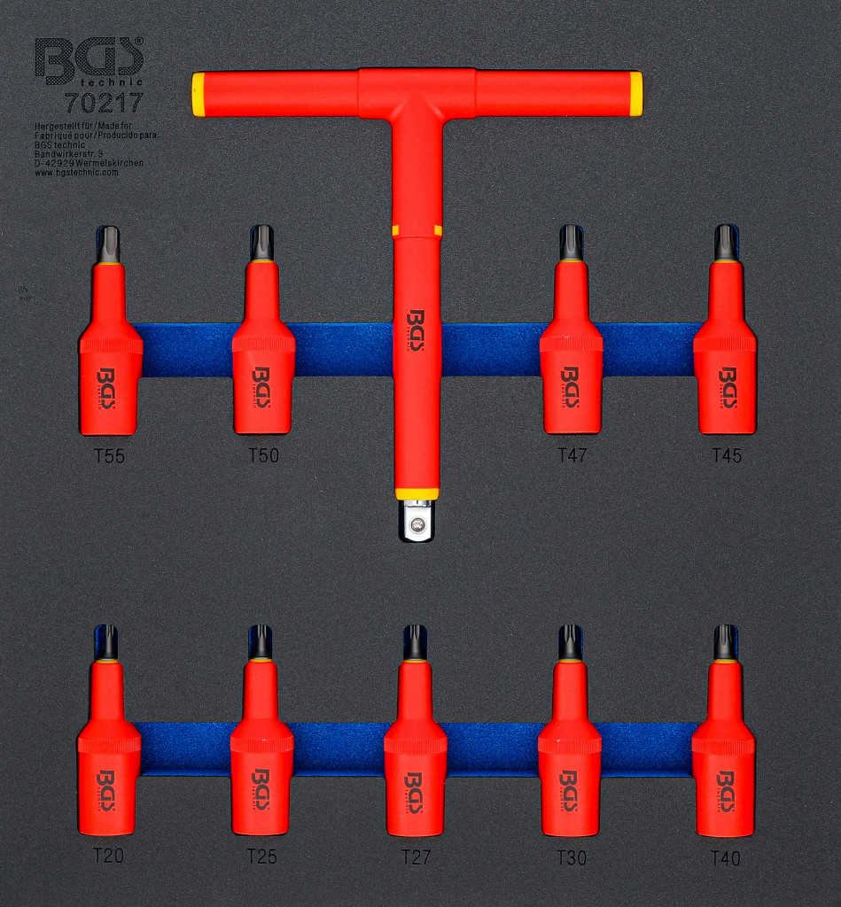 Set izoliranih VDE nasadnih ključev Torx T20–T55 za električne sisteme, testirano do 1000 V, vsebuje T-ročaj in prazen pladenj 2/3.