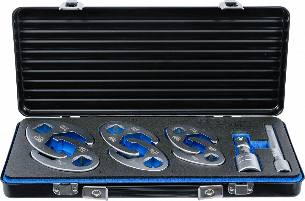 Vsebuje naslednja orodja: nasadni ključi z odprtim koncem 12,5 mm (1/2") pogon: 33 - 36 mm; nasadni ključi z odprtim koncem notranji kvadrat 20 mm (3/4"): 38...