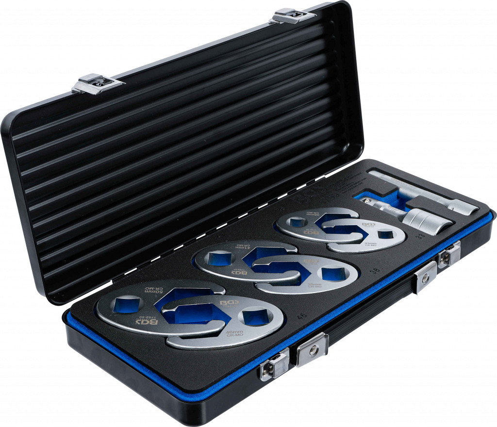 Vsebuje naslednja orodja: nasadni ključi z odprtim koncem 12,5 mm (1/2") pogon: 33 - 36 mm; nasadni ključi z odprtim koncem notranji kvadrat 20 mm (3/4"): 38 - 41 - 46 - 50 mm; podaljšek 12,5 mm (1/2"); podaljšek 20 mm (3/4")