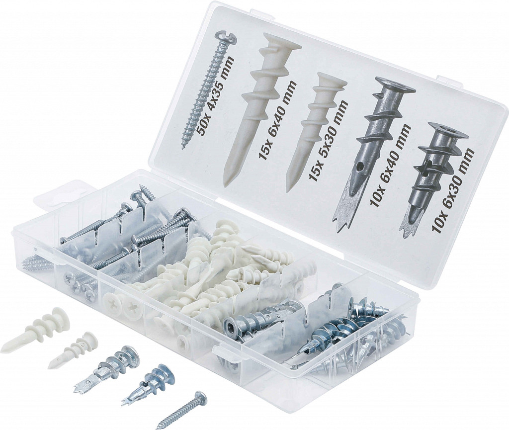 Z vrtalno konico vključuje 20 moznikov, dolžina 30 mmza premere vijakov 3,5 do 5,5 mmv polietilensko vrečkoizdelano v Nemčiji