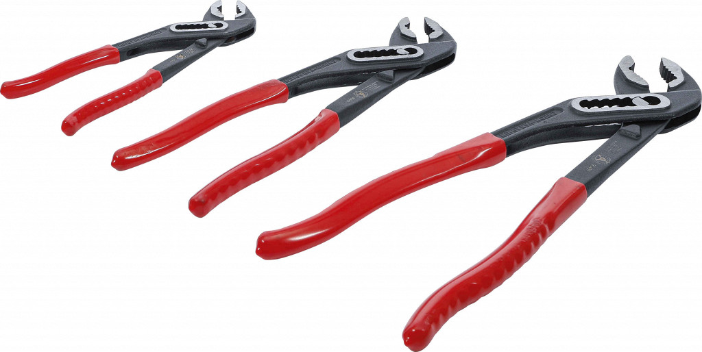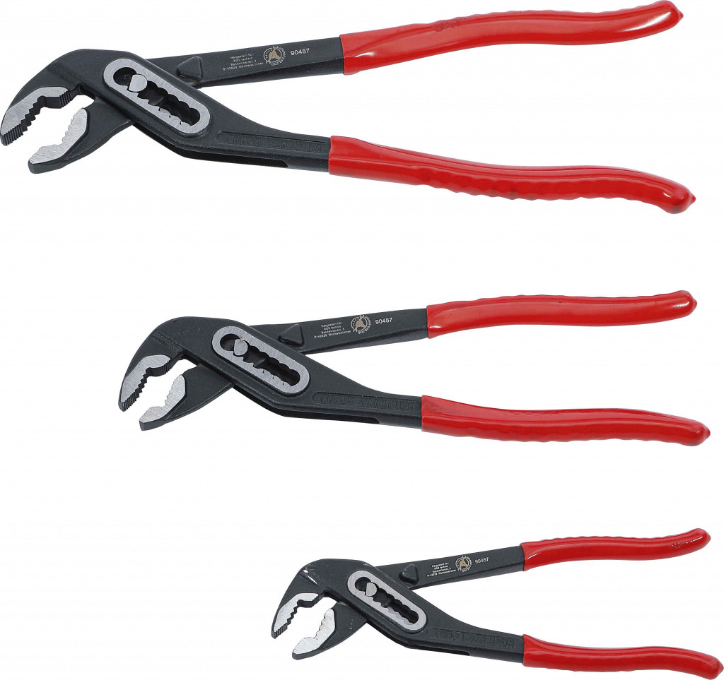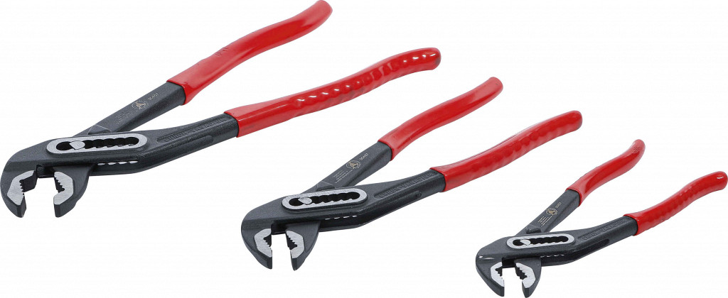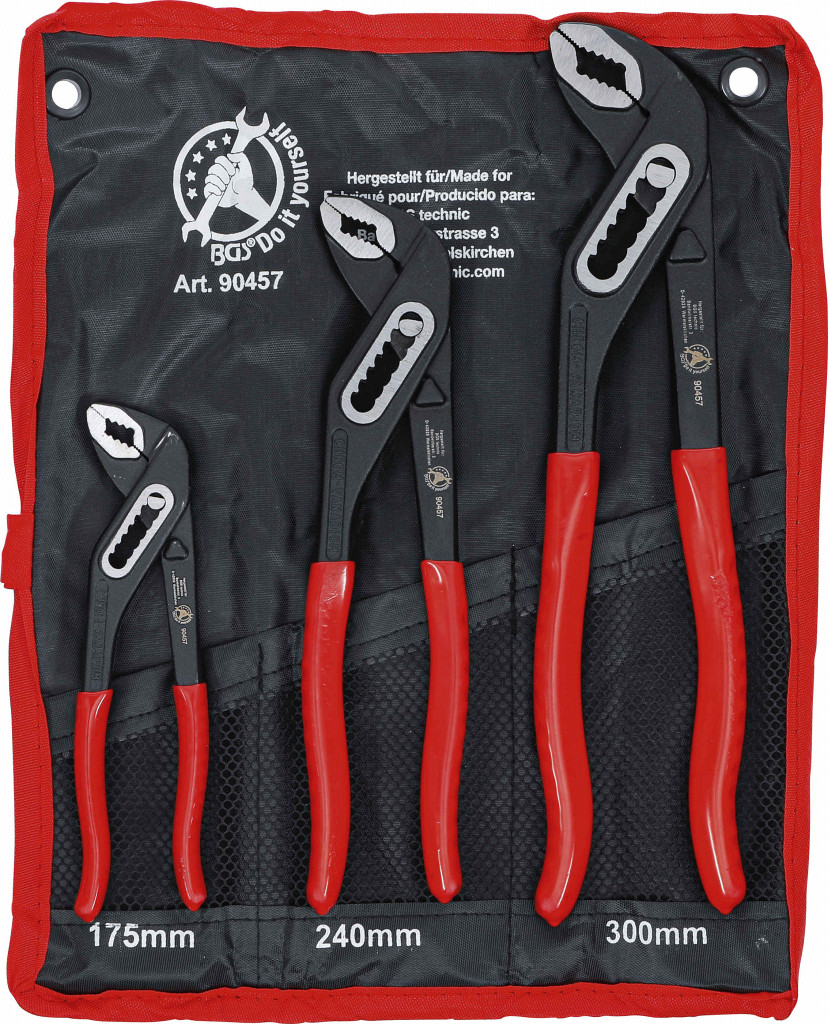 Varnostni ročajikovaniutrjeničrno pobarvanepolirane čeljusti in spojenirdeči PVC potopljeni ročajiška-spojpakiran v tetronovo denarnico.obseg dobave:... klešče za vodno črpalko 175 mm, odprtina največja širina: 27 mm klešče za vodno črpalko 250 mm, odprtina maksimalna širina: 38 mm klešče za vodno črpalko 300 mm, odprtina največja širina: 44 mm