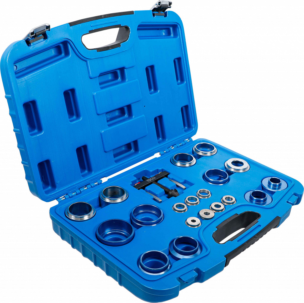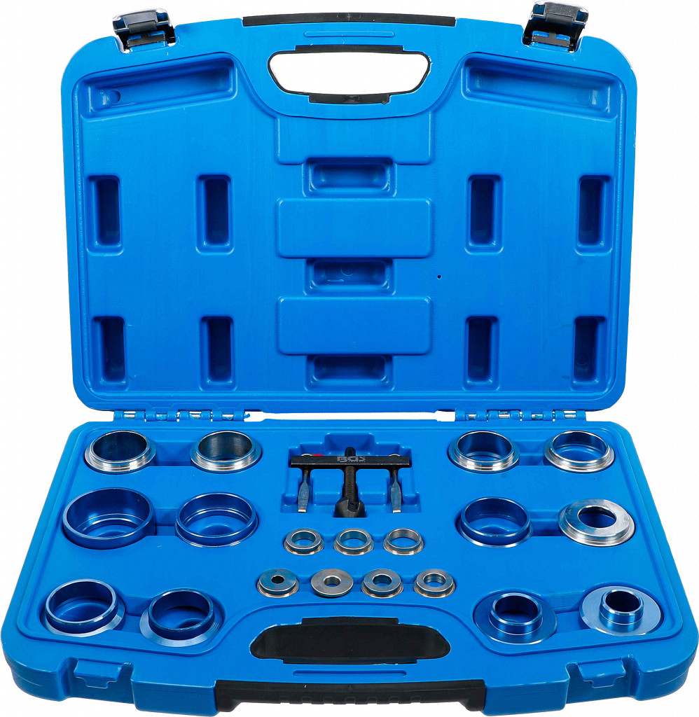 Komplet za montažo radialnih tesnilnih obročev premera 21,5–64 mm, vsebuje razmaknice, stiskalne tulce, adapterje in snemalce za tesnila.