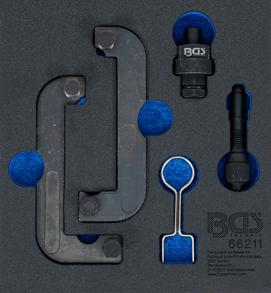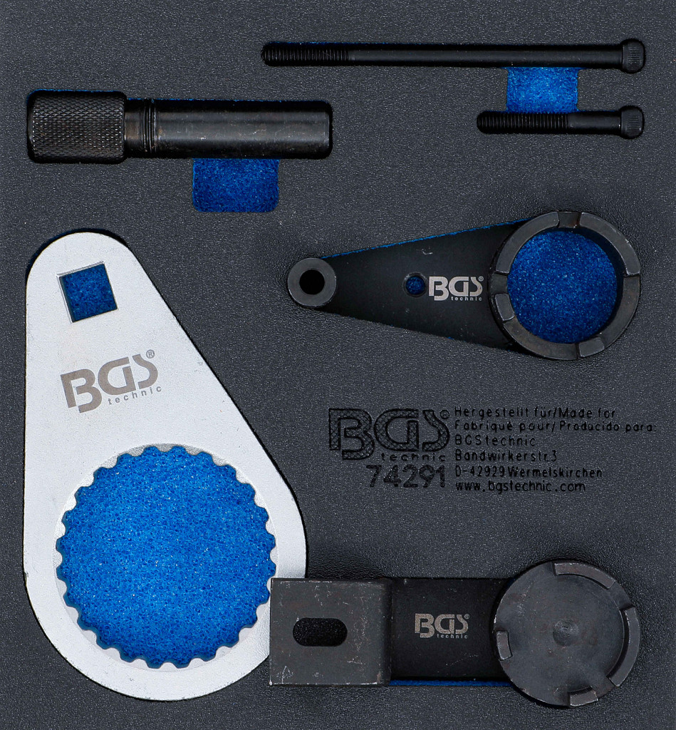 Komplet za nastavitev krmiljenja motorja pri menjavi tesnila glave, odmične gredi ipd. Primerno za Audi A6, Q5. Vključuje blokade odmične in ročične gredi,...